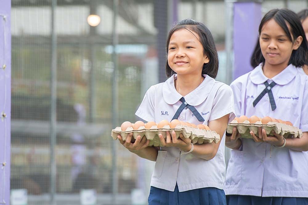 ส่วน วราราชย์ เรืองศรี กล่าวว่า ซีพีเอฟ ร่วมสนับสนุนมูลนิธิ ทั้งงบประมาณและบุคลากรอย่างเต็มกำลัง ที่ผ่านมาบริษัทฯ ได้ส่งผู้เชี่ยวชาญเข้าไปติดตาม ดูแล ให้คำแนะนำด้านการเลี้ยงไก่ไข่ และการจัดการผลผลิตไข่ไก่สด แก่ครูและนักเรียนในโรงเรียนที่ร่วมโครงการฯอย่างต่อเนื่อง ทำให้สามารถบริหารโครงการได้ด้วยตนเอง เพื่อส่งเสริมสุขภาพของเด็กเยาวชนไทยที่เป็นอนาคตของประเทศจากการบริโภคไข่ไก่อาหารโปรตีนคุณภาพดีอย่างเพียงพอ อิ่มท้อง สมองแจ่มใส หวังว่าโรงเรียนจะสามารถดำเนินการบริหารจัดการสู่ความสำเร็จอย่างยั่งยืน เป็นแบบอย่างให้แก่โรงเรียนอื่นๆ ต่อไป