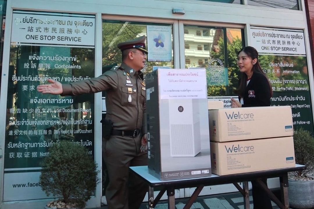 ลงพื้นที่เยี่ยมให้กำลังใจ รวมถึงมอบเครื่องฟอกอากาศจำนวน 1เครื่อง จาก คุณบูม ภัทรภณ หงษ์ศรีสุข และหน้ากากอนามัย จำนวน3ลัง ณ สถานีตำรวจพลับพลาไชย 1,2