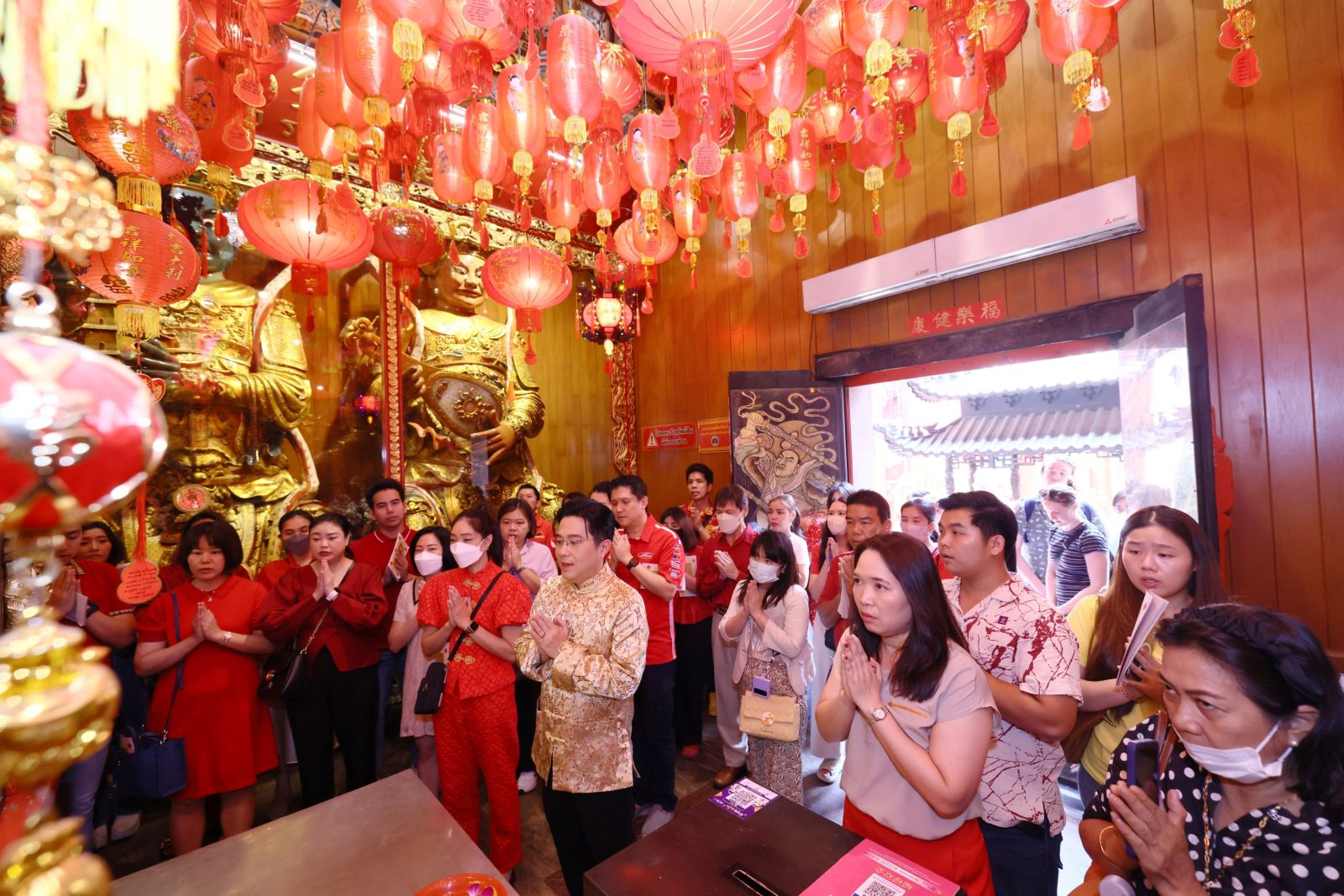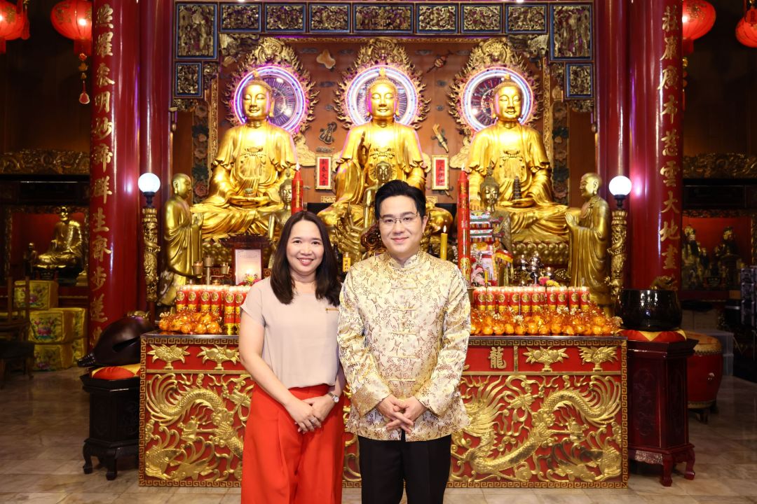 เริ่มต้นกิจกรรมเสริมความเฮงโดย หมอช้าง ได้แนะนำขั้นตอนการไหว้พระขอพรจากสิ่งศักดิ์สิทธ์อย่างไรให้ถูกต้อง พร้อมแนะนำเพิ่มเติมว่าที่วัดเล่งเน่ยยี่ ทุกคนสามารถมาไหว้พระขอพรได้ตามปกติ ไม่เฉพาะแต่ผู้ที่ต้องการมาแก้ชงเท่านั้น อีกทั้งปีนี้เป็นปีมังกร เหมาะเป็นอย่างยิ่งในการมาสักการะขอพรที่วัดมังกรกมลาวาส ซึ่งมีชื่อวัดสอดรับกับปีมังกร สามารถมากราบไหว้สิ่งศักดิ์สิทธิ์ภายในวัดเพื่อความเป็นสิริมงคล เรียกทรัพย์ เสริมความเฮง ความปังได้ตลอดทั้งปี โดยเริ่มต้นพิธีการสักการะด้วยการจุดเทียน เปรียบเสมือนการเริ่มต้นการงานและชีวิตด้วยแสงสว่าง พร้อมด้วยส้มมงคลสัญลักษณ์แห่งความโชคดี จำนวน 5 ลูก เสมือนธาตุทั้ง 5 ได้แก่ ธาตุไม้ ธาตุไฟ ธาตุดิน ธาตุทอง และธาตุน้ำ ลำดับถัดไป หมอช้าง ได้พาผู้ร่วมทริปเดินชม และกราบสักการะตามจุดต่างๆ ภายในวัดอย่างใกล้ชิด อาทิ องค์ไฉ่ชิงเอี๊ยะ หรือเทพเจ้าแห่งโชคลาภ องค์ไท้ส่วยเอี๊ย หรือเทพเจ้าคุ้มครองดวงชะตา เทพเจ้ากวนอู ขอพรเรื่องหน้าที่การงาน การค้าขาย เสริมมิตรภาพที่ดี และ ท้าวเวสสุวรรณ เป็นต้น นอกจากนี้ หมอช้าง ยังได้อธิบายเพิ่มเติมเกี่ยวกับปีชงว่า ปีชงไม่ได้แปลว่าไม่ดี โดยหลักการแล้วการชงมีอยู่แค่ปีเดียว และจะวนมาตรงกับเราในรอบ 12 ปีเพียงหนึ่งครั้งเท่านั้น สำหรับคนที่เกิดในปีชงควรหมั่นทำความดี และทำบุญเป็นประจำ