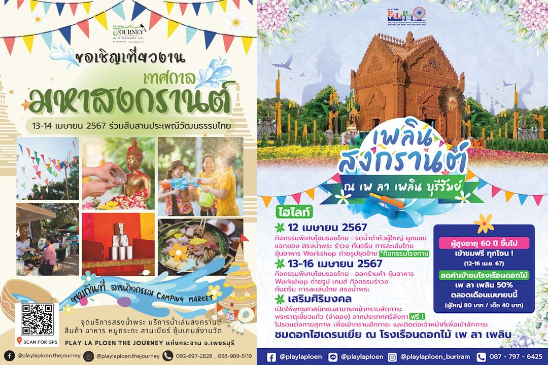 นอกจากพื้นที่บุรีรัมย์แล้ว ในปีนี้ อุทยานการเรียนรู้เพ ลา เพลิน ได้ต่อยอดความมุ่งมั่นในการขยายฐานการสร้างพื้นที่การเรียนรู้แห่งใหม่ขึ้น คือ เพ ลา เพลิน เดอะเจอร์นีย์ อำเภอแก่งกระจาน จังหวัดเพชรบุรี แหล่งเรียนรู้ที่มุ่งเน้นสร้างประสบการณ์ในการเรียนรู้ด้านการท่องเที่ยวเชิงอนุรักษ์และธรรมชาติ ฉลองมหาสงกรานต์เมืองเพชร ด้วยกิจกรรมมากมาย ชวนทุกท่านมาสาดความสนุก รับสงกรานต์ กับโปรโมชั่น จัดเต็มทุกกิจกรรม ได้แก่ ซุ้มเกมส์สนุกสนาน ปา-ป๋อง, ตักไข่, โยนบอล, ปิงปอง และสอยดาว พร้อมกับจุดบริการสรงน้ำพระ บริการน้ำเล่นสงกรานต์ และกิจกรรม Workshop และขอแนะนำเมนูพิเศษตำรับชาวเพชร กับชุดปิ่นโต Series ปลาทู 4 รส และชุดปิ่นโตข้าวเหนียว 3 หน้า และพิเศษสุดๆ เมื่อใส่เสื้อลายดอก ถ่ายรูปเช็คอิน รับสิทธิ์ร่วมกิจกรรมฟรี 1 กิจกรรม และเมื่อซื้อสินค้า อาหาร เครื่องดื่ม 500 บาท รับฟรีไปเลยไอติม หรือปืนฉีดน้ำดับร้อน เฉพาะ 12-16 เมษายน นี้