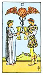 อิทธิพลของไพ่ 2 ถ้วย (Two of Cups) คุณจะสุดดีใจได้งานใหม่ที่เราลุ้นไว้ ส่วนงานอิสระกิจการไปได้ดีมีลูกค้ามากขึ้น ด้านความรักคนโสดจะพบรักถูกใจการคบหาเป็นไปอย่างมีความสุข ส่วนคนที่ดูใจกันมานานจะได้ใช้ชีวิตคู่ร่วมกัน ด้านการเงินเริ่มเดินสะพัด แต่ให้ระวังจะมีรายจ่ายมาจากครอบครัวเป็นเหตุ ส่วนที่หวังการเสี่ยงถ้าไม่โลภมากพอได้เงินเข้ามาใช้ และช่วงนี้ควรทำบุญทำทานนั่งสมาธิแผ่เมตตาเพื่อเสริมดวงชะตาตนเอง