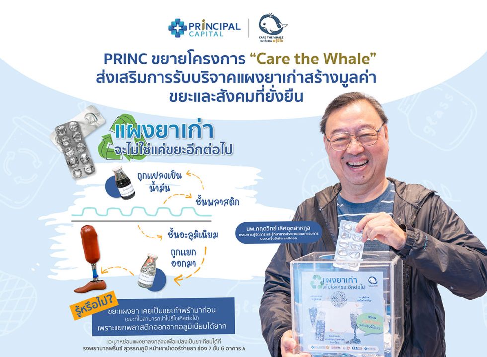 นพ.กฤตวิทย์ เลิศอุตสาหกูลกรรมการผู้จัดการ และรักษาการประธานคณะกรรมการ บมจ.พริ้นซิเพิลแคปิตอล เปิดเผยว่า โครงการรับบริจาคแผงยาเก่าสืบเนื่องจากการมีส่วนร่วมในโครงการ “Care the Whale สถานีขยะล่องหนคุ้งบางกะเจ้า ปีที่ 4” ในฐานะที่ PRINC มีบทบาทหลักในการให้ความรู้เรื่องการแยกขยะ ได้จัดกิจกรรมออกหน่วยตรวจสุขภาพพระสงฆ์ในวัดจากแดง พร้อมตรวจคัดกรองสุขภาพคนในชุมชนคุ้งบางกะเจ้า สำหรับประชาชนผู้นำขยะมาส่ง ณ จุดตรวจ ภายใต้โครงการ “ขยะแลกสุขภาพ” เพื่อสร้างระบบนิเวศในการจัดการและหาทางไปให้กับขยะ โดยในปีนี้ มุ่งเน้นไปที่การรับบริจาค“แผงยาเก่า” ซึ่งถือว่าเป็นขยะกำพร้า นำไปส่งต่อให้วัดจากแดง เพื่อแยกอะลูมิเนียมแปลงเป็นทุนส่งต่อมูลนิธิขาเทียมฯ เพื่อสนับสนุนในการช่วยเหลือในการผลิตขาเทียมให้แก่ผู้พิการต่อไป โครงการนี้เป็นตัวอย่างที่ดีของการนำขยะที่ไร้ค่ากลับมาใช้ให้เป็นประโยชน์ส่งเสริมสุขภาพที่ดีและสิ่งแวดล้อมอย่างยั่งยืน เช่นเดียวกันกับปณิธานขององค์กรในการสร้างคนที่มีจิตใจของความเป็นผู้ให้ควบคู่กับการดูแลคุณภาพชีวิตของคน ชุมชน สังคม