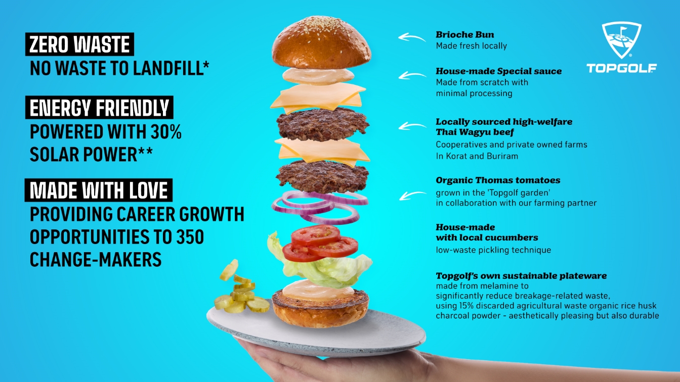 ท็อปกอล์ฟ เมกาซิตี้ ถือเป็นแลนด์มาร์กสำหรับคนรักกีฬาและความบันเทิงแบบครบวงจร ขนาดใหญ่ที่รองรับคนได้ถึง 2,000 คน ในการจัดงานเพียงครั้งเดียว โดยในแต่ละเบย์มีที่นั่งสะดวกสบาย รองรับผู้เล่นได้สูงสุดถึง 6 คน พรั่งพร้อมด้วยเกม อาหารรสเลิศ และความสนุกเต็มอิ่มสำหรับทุกคน ไปพร้อมๆ กันกับการใส่ใจด้านความยั่งยืน เนื่องจากท็อปกอล์ฟ เล็งเห็นถึงโอกาสในการสร้างความเปลี่ยนแปลงเชิงบวกต่อสิ่งแวดล้อมให้เกิดขึ้นได้ จากการจัดงานและรับรองคนจำนวนมากในแต่ละวัน โดยเฉพาะด้าน ‘Food waste’ หรือ ‘ขยะจากอาหาร’ ซึ่งทางท็อปกอล์ฟได้วางระบบจัดการขยะที่มีความครอบคลุม อันรวมไปถึงเป้าหมายการลดขยะเป็นศูนย์ อีกทั้งยังเป็นการตั้งมาตรฐานใหม่ด้านความยั่งยืนให้กับอุตสาหกรรมอาหารและความบันเทิงอีกด้วย นอกเหนือจากด้านการลดขยะ ท็อปกอล์ฟยังให้ความสำคัญกับโครงการริเริ่มอื่นๆ อาทิ พลังงานหมุนเวียน และการส่งเสริมความรับผิดชอบต่อสังคม โดยการลงทุนและติดตั้งแผงโซลาร์เซลล์ เพื่อลดการพึ่งพาพลังงานที่ไม่หมุนเวียน และมุ่งมั่นส่งเสริมความเปลี่ยนแปลงที่ดีให้เกิดขึ้นในสังคม โดยการทำกิจกรรมในชุมชนใกล้เคียง อาทิ การสนับสนุนโครงการท้องถิ่น