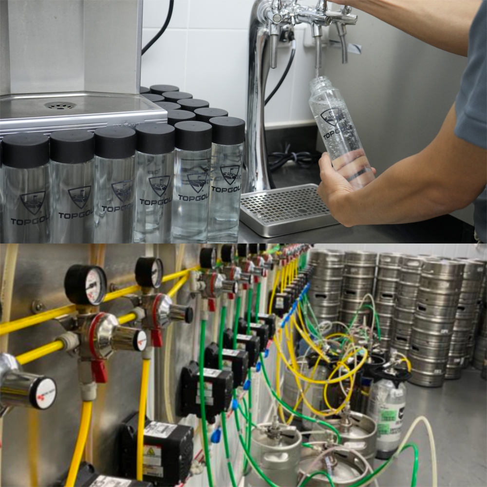 ท็อปกอล์ฟ เมกาซิตี้ มุ่งมั่นที่จะกำจัดขยะพลาสติกแบบใช้ครั้งเดียว ด้วยการไม่ใช่สิ่งที่จะก่อให้เกิดขยะพลาสติกตั้งแต่ก่อนที่จะเข้าสู่การดำเนินงาน ยกตัวอย่างเช่น น้ำเปล่าของท็อปกอล์ฟมาจากระบบกรองน้ำแร่ของ Nordaq ซึ่งช่วยลดความจำเป็นในการใช้ขวดพลาสติกหรือขวดแก้ว นอกจากนี้ เครื่องดื่มน้ำอัดลมยังผสมกันสดๆ โดยใช้เครื่อง Post-Mix เพื่อหลีกเลี่ยงการใช้กระป๋องและขวดน้ำอัดลม นอกจากนี้ท็อปกอล์ฟยังวางระบบเบียร์สดแบบ 34 ก๊อก ซึ่งจะช่วยลดขยะจากขวดและกระป๋องเบียร์แบบปกติได้อย่างมาก และทำให้ในปี 2566 ท็อปกอล์ฟสามารถลดขยะจากเบียร์ขวดใหญ่ได้ถึง 65,000 ขวด ขวดน้ำ 6,000 ขวด และน้ำอัดลมขวดลิตรจำนวนถึง 1,400 ขวดเลยทีเดียว