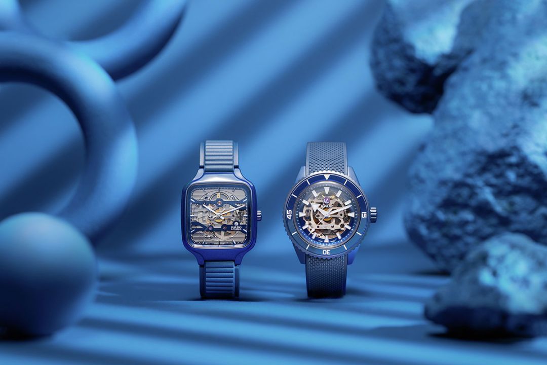 Rado เผยโฉม Rado High-Tech Ceramic นาฬิกาไฮเทคเซรามิก สีกรมท่า2 รุ่นล่าสุด Rado True Square Automatic Skeleton ตัวเรือนทรงสี่เหลี่ยมขนาดใหญ่กับมุมที่โค้งมนหน้าปัดด้านหน้าดีไซน์ให้มีบริดจ์สีน้ำเงินเข้มพาดผ่านฟันเฟืองกลไกคาลิเบอร์ R808 อันงดงามด้านใน และอีกหนึ่งรุ่น Captain Cook High-Tech Ceramic Skeleton นาฬิกาผิวด้านดีไซน์สปอร์ต ที่พร้อมให้ใส่ไปผจญภัยในทุกสถานการณ์ บริเวณหน้าปัดเป็นแบบเปลือยให้เห็นกลไกการเดินคาลิเบอร์ R808 แบบเต็มตาเช่นกัน
