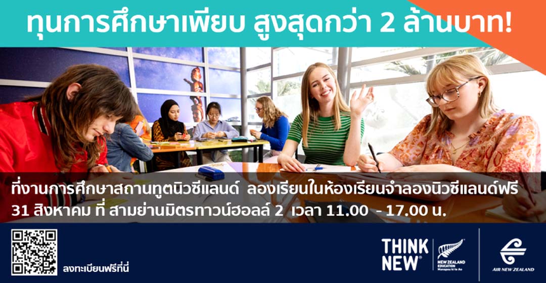 สำหรับน้องๆ ที่สนใจอยากเรียนต่อประเทศนิวซีแลนด์ โอกาสมาแล้วกับงานใหญ่ประจำปี หนึ่งปีมีหนเดียว พบกันในงานมหกรรมการศึกษาสถานทูตนิวซีแลนด์ New Zealand Education Fair 2024 วันเสาร์ที่ 31 ส.ค. 2567 นี้ โดยสามารถขอรับคำปรึกษาได้โดยตรงจากกว่า 60 สถาบัน ทั้งระดับมัธยม มหา’ลัย สถาบันเทคโนโลยี และสถาบันภาษา น้องๆ สามารถขอรับคำปรึกษาหลักสูตรการศึกษาที่เหมาะสมกับตนเองเรียนได้ทั้งระยะสั้น Summer Programme, certificate/diploma และระยะยาว ไม่มีพื้นฐานภาษาอังกฤษก็ไปได้ พบกับรูปแบบการเรียนการสอนใหม่ๆ ในแบบนิวซีแลนด์ ประเทศที่มีระบบการศึกษาที่เปิดกว้างและโดดเด่นด้านเทคโนโลยีดิจิทัล
