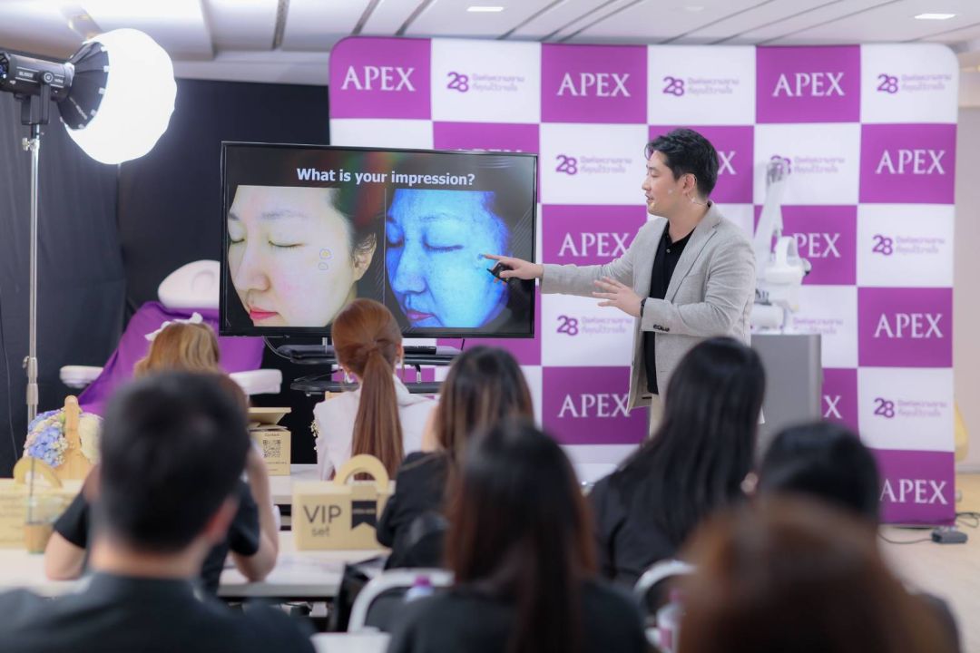 สำหรับงาน APEX EXCLUSIVE TRAINTING กับโปรแกรม “LASER AI REEPOT” ถือเป็นการตอกย้ำความสำเร็จ เนื่องจากเลเซอร์ AI เป็นการรักษาปัญหาผิวอย่างมีประสิทธิภาพ โดยโปรแกรมดังกล่าวจะสามารถช่วยหลีกเลี่ยงไม่ก่อให้เกิดผลเสียต่อบริเวณผิวหนังที่ไม่มีปัญหา อีกทั้งผู้ที่มีปัญหาส่วนใหญ่ จากผลการวิจัยกว่า 70% พบว่าการรักษาด้วยเครื่องเลเซอร์อัจฉริยะ สามารถรักษาให้หายขาดได้เพียงครั้งเดียว ซึ่งถือเป็นเทคโนโลยีอันชาญฉลาดที่สุดเท่าที่เคยมี