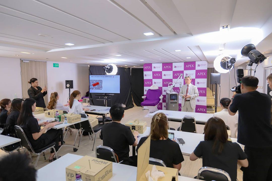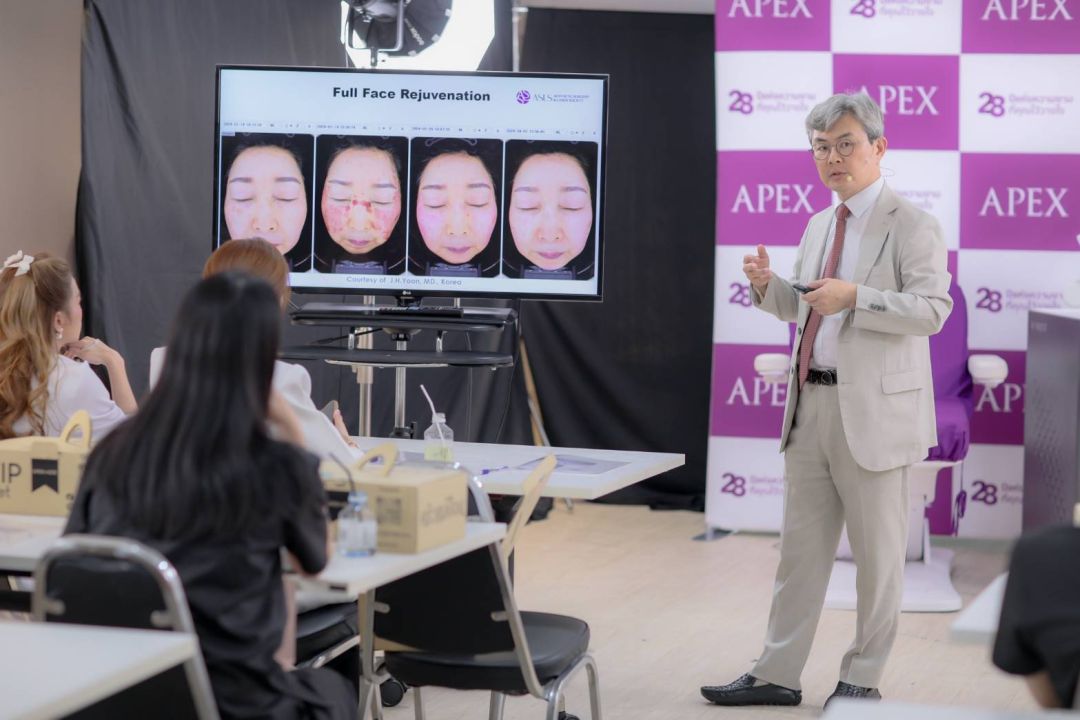 โดยงานนี้ได้รับเกียรติจาก Dr.Jeung Hyun Yoon (จอง-ฮยอน-ยุน) ประธานสมาคมศัลยกรรมความงามและเลเซอร์อุปกรณ์ทางการแพทย์ความงามประเทศเกาหลี เดินทางมาร่วมแชร์ประสบการณ์และเทคนิคทางการแพทย์ให้แก่แพทย์ผู้เชี่ยวชาญประจำ APEX อีกทั้งยังได้ให้คนไทย 10 ท่านแรกในเอเชียที่ได้เข้ามาทดลองสัมผัสกับเครื่องเลเซอร์ AI REEPOT ในงาน EXCLUSIVE TRAINTING ซึ่งจัดขึ้นที่ โรงพยาบาลศัลยกรรมตกแต่งเฉพาะทางเอเพ็กซ์ พร้อมมาร่วมแบ่งปันประสบการณ์การดูปัญหาผิวหน้าในครั้งนี้อีกเช่นกัน