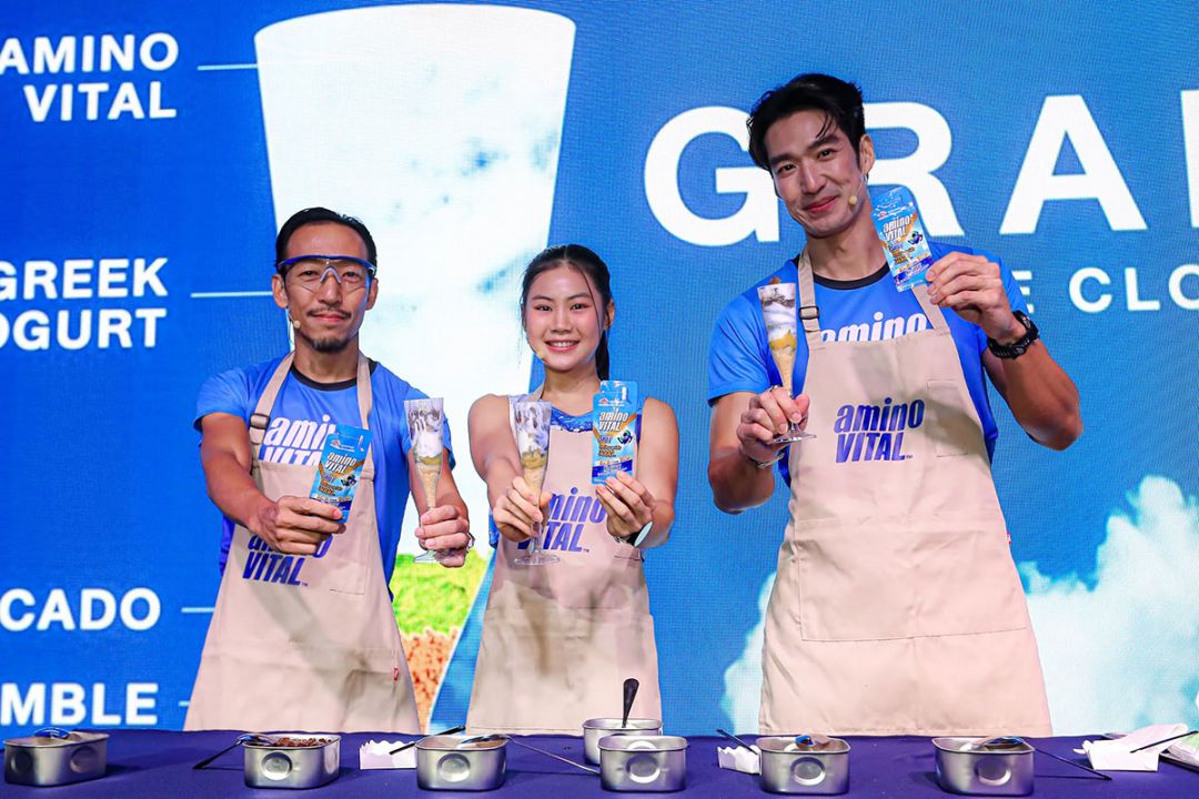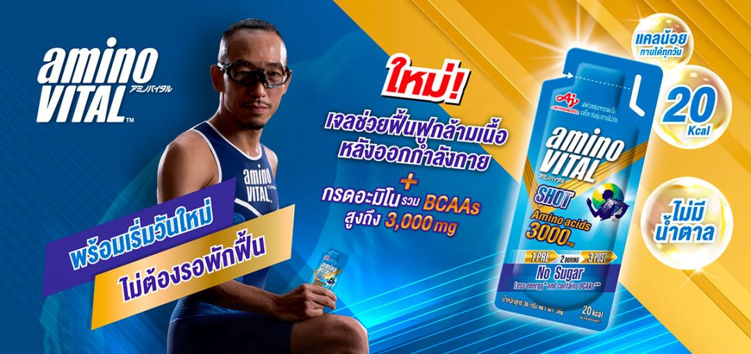 บริษัท อายิโนะโมะโต๊ะ (ประเทศไทย) จำกัดบริษัทชั้นนำของโลกในการสร้างความกินดีมีสุข มุ่งเดินหน้าสู่การเป็นผู้นำในตลาดสินค้าโภชนาการการกีฬา (Sport Nutrition) ด้วยการเปิดตัวนวัตกรรมผลิตภัณฑ์เสริมอาหารกรดอะมิโนตัวใหม่ ในงาน Townhall “Grape On The Cloud by aminoVITAL®” ภายใต้แบรนด์ aminoVITAL® Blue Shot เจลฟื้นฟูกล้ามเนื้อขนาดเล็กพกพาสะดวก พลังงานเพียง 20 Kcal ไม่มีน้ำตาลและมีส่วนประกอบของกรดอะมิโนรวม 3,000 มก.ช่วยเสริมประสิทธิภาพในการออกกำลังกาย และฟื้นฟูกล้ามเนื้อได้ทันทีหลังออกกำลังกาย ซึ่งโดดเด่นด้วย AminoScience อันเป็นความเชี่ยวชาญหลักของกลุ่มบริษัทอายิโนะโมะโต๊ะ