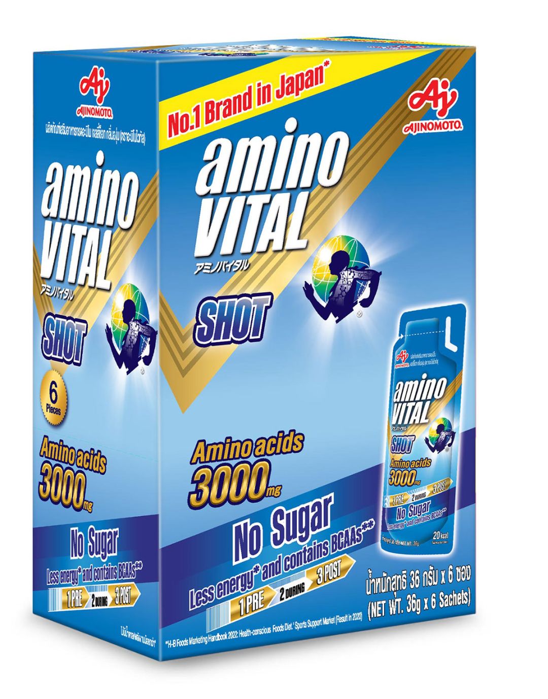 เบญจพล ลิมพลญาณ ผู้จัดการกองธุรกิจใหม่บริษัท อายิโนะโมะโต๊ะ (ประเทศไทย) จำกัด กล่าวว่า “จากผลการสำรวจ* หนึ่งปัญหาหลักของคนออกกำลังกายคือหลังจากออกกำลังกายเสร็จแล้ว ไม่อยากทานพลังงานเพิ่ม และวันรุ่งขึ้นออกกำลังกายไม่ไหว ทางแบรนด์ได้เล็งเห็นปัญหาของกลุ่มเป้าหมายจึงออกสินค้าใหม่ aminoVITAL® Blue Shot เจลฟื้นฟูกล้ามเนื้อ หลังออกกำลังกายที่มาในรูปแบบเจลลี่ รสองุ่น ทานง่าย แคลอรีต่ำ ไม่มีน้ำตาล มีส่วนประกอบของกรดอะมิโนรวม BCAAs สูงถึง 3,000 มก. ซึ่งสามารถช่วยเร่งการฟื้นฟูของกล้ามเนื้อลดอาการล้าในวันรุ่งขึ้นได้ดี ตอบโจทย์ผู้ที่ชื่นชอบการออกกำลังกายและต้องการควบคุมพลังงานไปพร้อมๆ กัน” (*Sport nutrition U&A research on Apr’23)