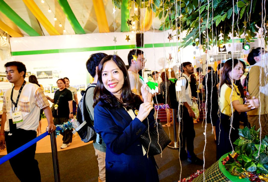 บรรยากาศภายในบูธ เต็มไปด้วยความคึกคักของผู้เที่ยวชมงานที่เข้ามาเลือกชม ชิม ช้อปสินค้าราคาพิเศษ อาทิ ผ้าขาวม้าแปรรูปจากร้านดารานาคี จ.บึงกาฬ และร้านวิมพ์วิภา จ.นนทบุรี ผ้าปาเต๊ะแปรรูป จาก Kebaya จ.กระบี่ นอกจากนี้ ยังมีร้านทองม้วนโฮมสเตย์บ้านถ้ำเสือจาก จ.เพชรบุรี ซาลาเปาจากแป้งข้าวใส่เม็ดบัวจาก จ.นครสวรรค์ และผลไม้สดจากสวนส้มโอ ขนุน ทุเรียนจากกลุ่มสวนขยันกิจ จ.บึงกาฬ หรือจะเป็นกิจกรรมเวิร์กช็อปที่มีผู้ที่สนใจมาลงชื่อจองคิวเต็มทุกรอบ และที่คิวยาวทุกปีหนีไม่พ้นโซนของฉายานิติกร ที่มีคนต่อแถวเรียงคิวกันเข้ามาเปลี่ยนชุดไทยเก็บภาพสวยๆ กันตลอดทั้งวัน และสุดยอดไฮไลท์ของบูธไทยเบฟกับกิจกรรมสอยดาวลุ้นรับรางวัลใหญ่มากมายที่ได้รับความสนใจเกินคาด
