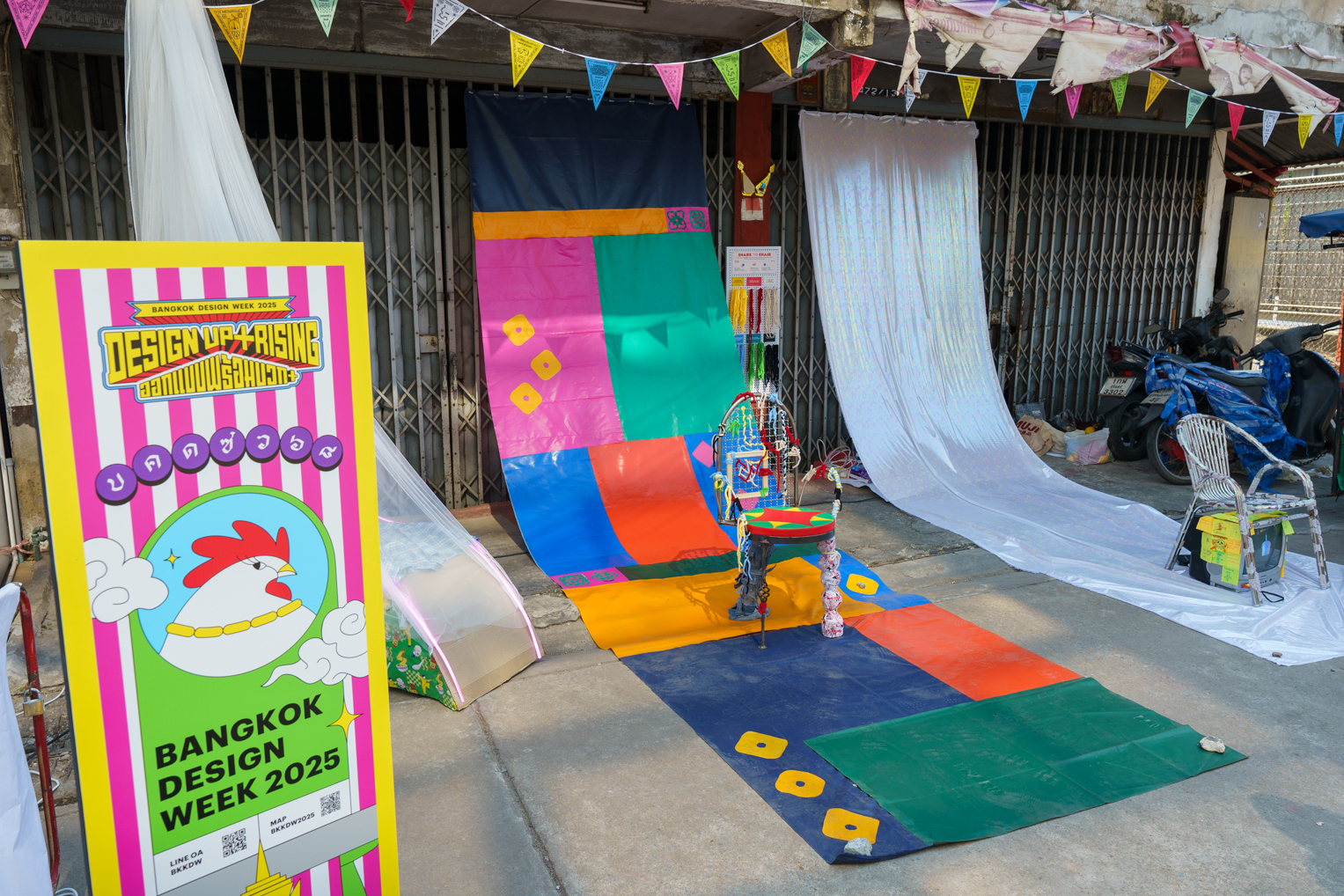 Seat of Origin: Where a Story Take a Seat @Hua Lamphong โดย By Gor.Gor.Nor.Group สัมผัสเรื่องเล่าจากชุมชนหัวลำโพง ที่ครั้งหนึ่งเต็มไปด้วยเสียงรถไฟและการสัญจรของผู้คน จาก “เก้าอี้” ที่รังสรรค์ด้วยเศษวัสดุเหลือใช้ในพื้นที่ ไม่ว่าจะเป็นเศษกระดาษปฏิทินจีนน่ำเอี๊ยง ขวดพลาสติก หรือเศษเหล็กจากบ้านเหล็กอิตาลี ซึ่งเก้าอี้เหล่านี้ไม่ได้เป็นเพียงผลงานออกแบบ แต่เปรียบเสมือนสัญลักษณ์ของชีวิตผู้คนในย่าน เพราะทุกครั้งที่ผู้ชมได้นั่ง เฉพาะวันเสาร์และวันอาทิตย์ 15 - 16, 22 - 23 กุมภาพันธ์ 2568 ตั้งแต่เวลา 13.00 -15.00 น. สถานที่: ตรอกนิลประดับข้างทางด่วน