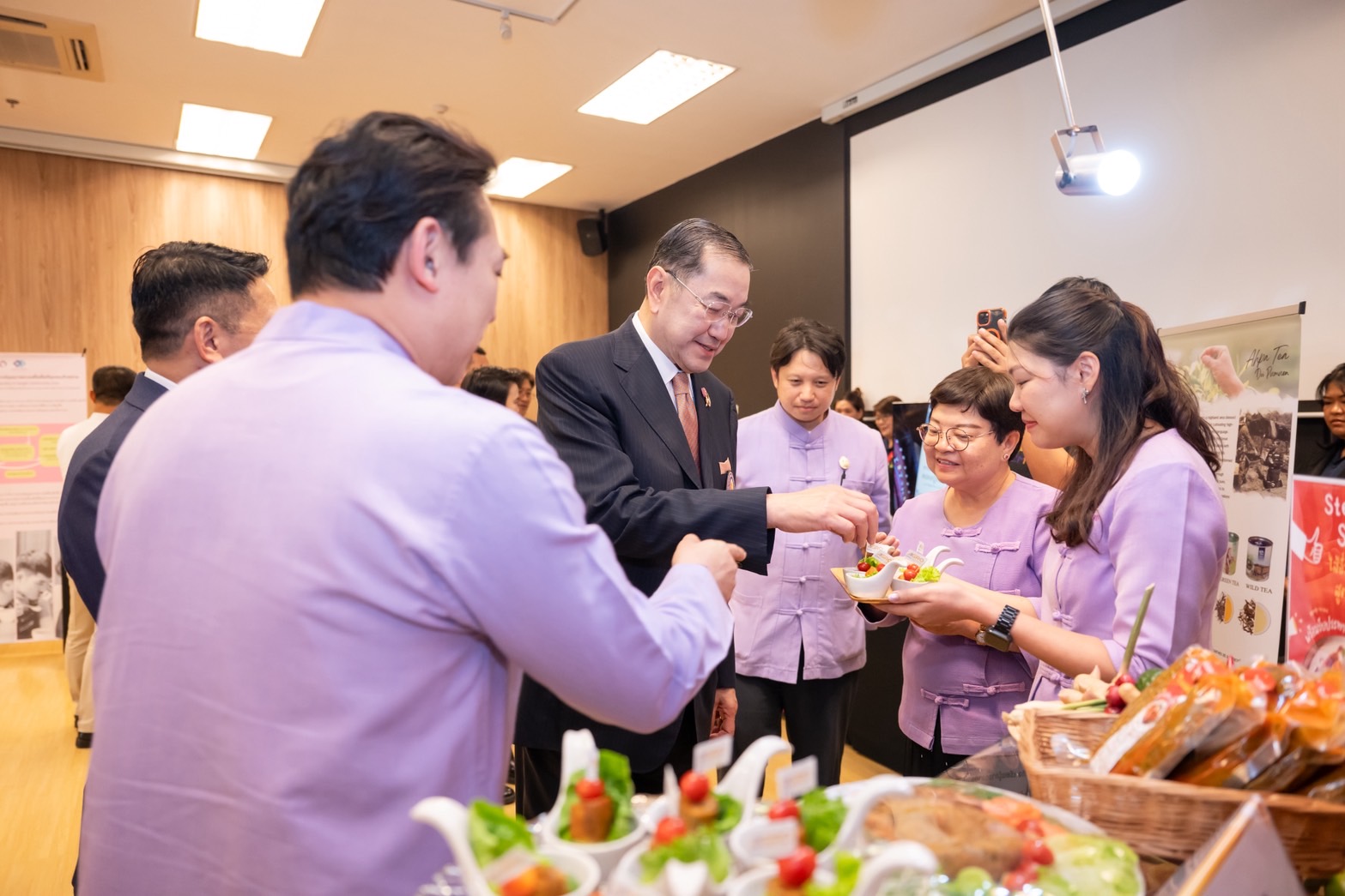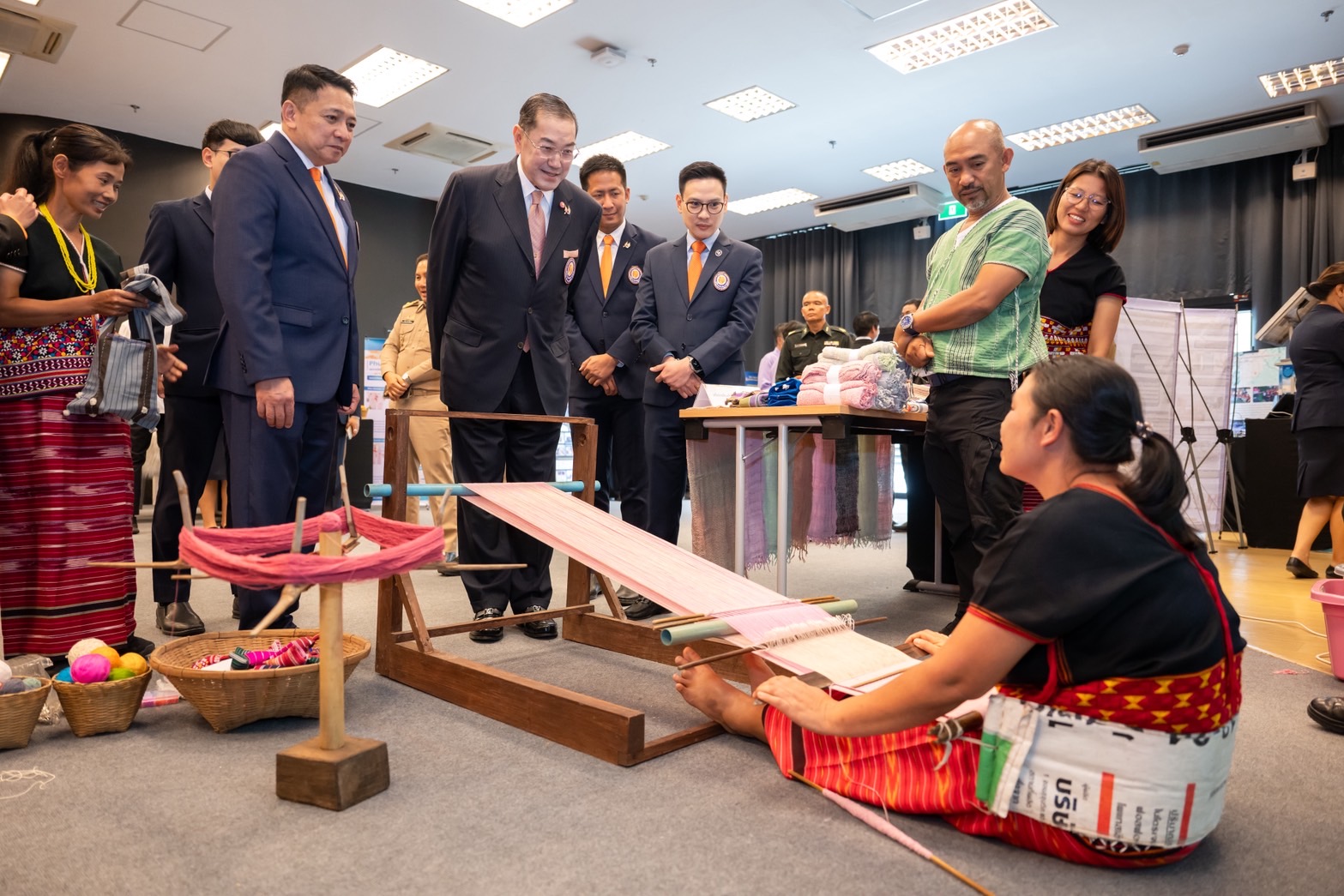 ในพิธีมีการจัดแสดงนิทรรศการและผลิตภัณฑ์ชุมชนในโครงการส่งเสริมธุรกรรมออนไลน์เพื่อชุมชน ที่มูลนิธิฯ ร่วมกับสถาบันอุดมศึกษาที่เป็นเครือข่ายของมูลนิธิฯ ในภูมิภาคต่างๆ เช่น มหาวิทยาลัยเชียงใหม่ ในการช่วยชุมชนพัฒนาผลิตภัณฑ์ ออกแบบบรรจุภัณฑ์ และสอนการขายสินค้าผ่านทางออนไลน์ ตามพระนโยบายการฟื้นฟูและพัฒนาผู้ประสบภัยอย่างยั่งยืน