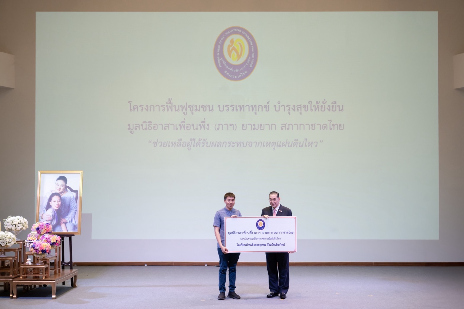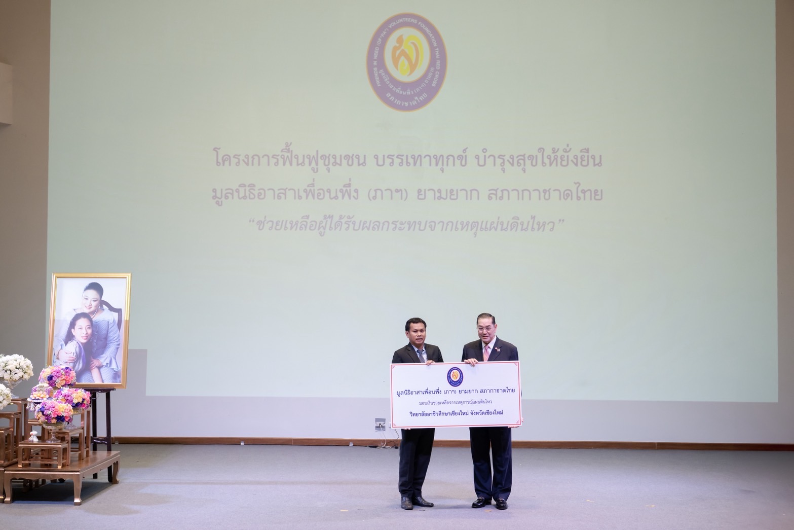 ศ.ดร.สุรเกียรติ์ เสถียรไทย รองประธานกรรมการที่ปรึกษา และประธานกรรมการบริหาร ทำหน้าที่แทนประธานกรรมการมูลนิธิอาสาเพื่อนพึ่ง (ภาฯ) ยามยาก สภากาชาดไทย เป็นประธานในพิธีมอบเงินช่วยเหลือผู้ได้รับผลกระทบจากเหตุแผ่นดินไหว ภายใต้ ”โครงการฟื้นฟูชุมชน บรรเทาทุกข์ บำรุงสุขให้ยั่งยืน“ โดย มูลนิธิอาสาเพื่อนพึ่ง (ภาฯ) ยามยาก สภากาชาดไทย พร้อมด้วย รองผู้ว่าราชการจังหวัดเชียงใหม่ อธิการบดีมหาวิทยาลัยเชียงใหม่ ส่วนราชการจังหวัดเชียงใหม่ และเจ้าหน้าที่มูลนิธิฯ เข้าร่วมในพิธีฯ เมื่อวันที่ 27 มิถุนายน 2568 ณ อาคารอำนวยการอุทยานวิทยาศาสตร์ภาคเหนือ (จังหวัดเชียงใหม่) มหาวิทยาลัยเชียงใหม่