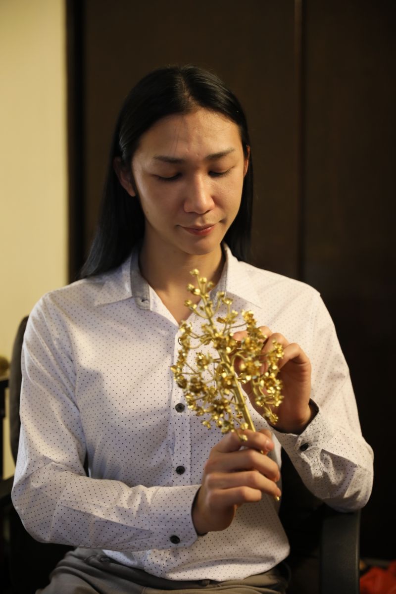 นวภัสร์ ตันติคุณาวงศ์ ทายาทช่างศิลปหัตถกรรม ประจำปี 2562 ประเภทเครื่องเงิน เครื่องทอง และเครื่องโลหะ ผู้เชี่ยวชาญงานหัตถกรรมดอกไม้ไหว