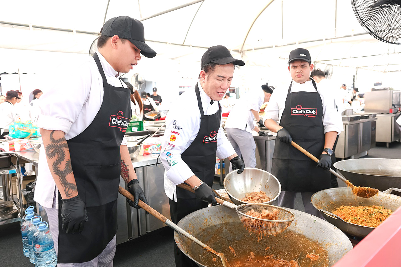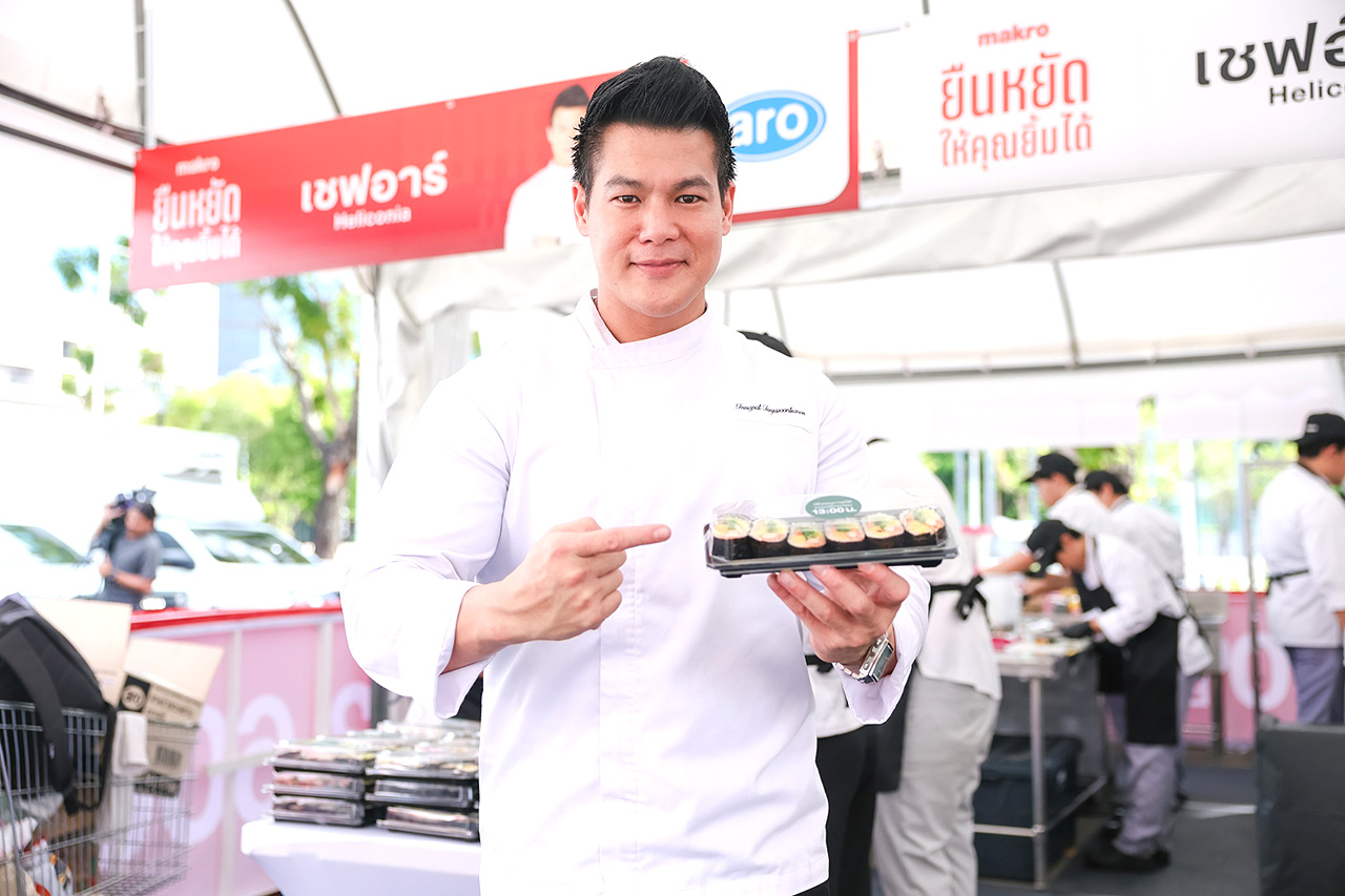 สำหรับกิจกรรม “ยืนหยัดให้คุณยิ้มได้ CHEF DAY’S CHARITY EVENT” เชฟและพันธมิตรได้รังสรรค์เมนูจากวัตถุดิบและผลิตภัณฑ์คุณภาพของแม็คโคร ครอบคลุมอาหารทั้งตะวันตก ไทย จีน เกาหลี ญี่ปุ่น และฟิวชัน ที่ปรุงสดใหม่ ได้แก่ เมนูสเต๊กไก่ซอสจูส์กับมันบด จากเชฟวิลเมนท์ ลีออง และเชฟเอก, เมนูปีกบนไก่บัฟฟาโล่วิงส์ ราดซอสชีสกับหอมทอด จากเชฟเมย์และเชฟบาส, เมนูพิซซ่าซาวโดวจ์ จากเชฟอ๊อฟ, เมนูยากิอุด้งไก่ จากเชฟพฤกษ์, เมนูคิมบับ จากเชฟอาร์, เมนูติ่มซำ จากเชฟป้อม, เมนูกุ้งทอดรสโนริ จากเชฟบิว ร้าน Eat Me Shrimp, เมนูสุกี้ผัดแห้งซอสหมาล่า จากเชฟโอ๋ ญาณัช และเชฟน้อย และเมนูข้าวกระเพราไก่ จากร้านกระเพราลุงหวัง ก่อนบรรจุใส่กล่องรวม 3,600 กล่อง และส่งมอบให้ชุมชนต่างๆ ในเขตกรุงเทพฯ ซึ่งแม็คโครยังได้ต่อยอดเมนูดังกล่าวสู่ผลิตภัณฑ์อาหารพร้อมปรุง–พร้อมทาน (RTC–RTE) ภายใต้แนวคิด “เอ็กซ์คลูซีฟจากเชฟชื่อดัง เฉพาะที่แม็คโคร” เพื่อสร้างความแตกต่าง ตอบโจทย์ทั้งผู้ประกอบการและลูกค้า ด้วยรสชาติคุณภาพมาตรฐานในราคาที่คุ้มค่า ที่สำคัญยังเป็นการเปิดโอกาสและสนับสนุนให้ผู้ประกอบการรายเล็กได้มีส่วนร่วมในการพัฒนาสูตรอาหาร สร้างรายได้เพิ่มขึ้น และเติบโตไปพร้อมกับแม็คโครอย่างยั่งยืน
