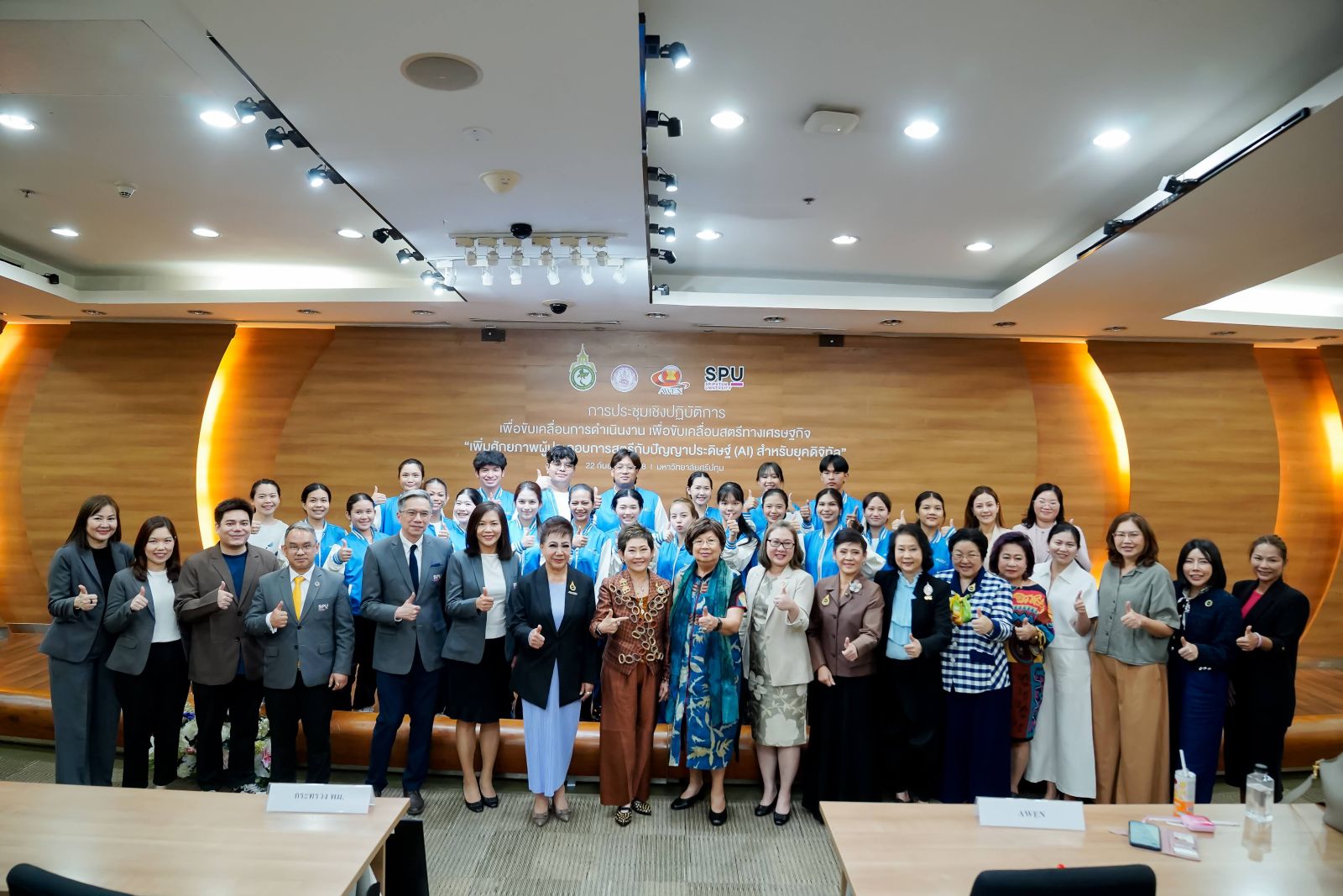 การประชุมเชิงปฏิบัติการ “เพิ่มศักยภาพผู้ประกอบการสตรี กับ AI สำหรับยุคดิจิทัล” เกิดจากผลกระทบของเทคโนโลยี AI ที่เข้ามาแทนที่งานหลายประเภท เช่น การตลาด บริการลูกค้า งานเอกสาร บัญชี และโรงงาน ทำให้คนที่ปรับตัวไม่ทัน เสี่ยงรายได้ลดลง และเผชิญปัญหาหนี้ครัวเรือนสูงขึ้น ดังนั้น เพื่อให้การประชุมเชิงปฏิบัติการครั้งนี้เกิดประสิทธิภาพสูงสุด มหาวิทยาลัยศรีปทุมจึงได้จัดทีมนักศึกษาของมหาวิทยาลัยผู้เชี่ยวชาญด้านการใช้เอไอ (AI Business Talent) อีก 20 คน ร่วมเป็นพี่เลี้ยงสนับสนุนวิธีการลงมือปฏิบัติ และใช้ประโยชน์จากเทคโนโลยี AI อย่างสร้างสรรค์ เพื่อเพิ่มขีดความสามารถในการแข่งขัน และขยายโอกาสทางธุรกิจ การประชุมในครั้งนี้สอดคล้องกับนโยบายสำคัญในการส่งเสริมและพัฒนาศักยภาพของผู้ประกอบการสตรีไทยในยุคดิจิทัลเพื่อให้สามารถแข่งขันและเติบโตได้อย่างยั่งยืนในตลาดโลก อีกทั้งเป็นการสร้างเครือข่ายความร่วมมือระหว่างหน่วยงานภาครัฐและเอกชนที่พร้อมสนับสนุนแนวทางการใช้เทคโนโลยีอย่างมีประสิทธิผล นับเป็นก้าวสำคัญในการยกระดับศักยภาพสตรีนักธุรกิจไทยให้ก้าวทันยุคสมัยและเข้มแข็งในทุกมิติ