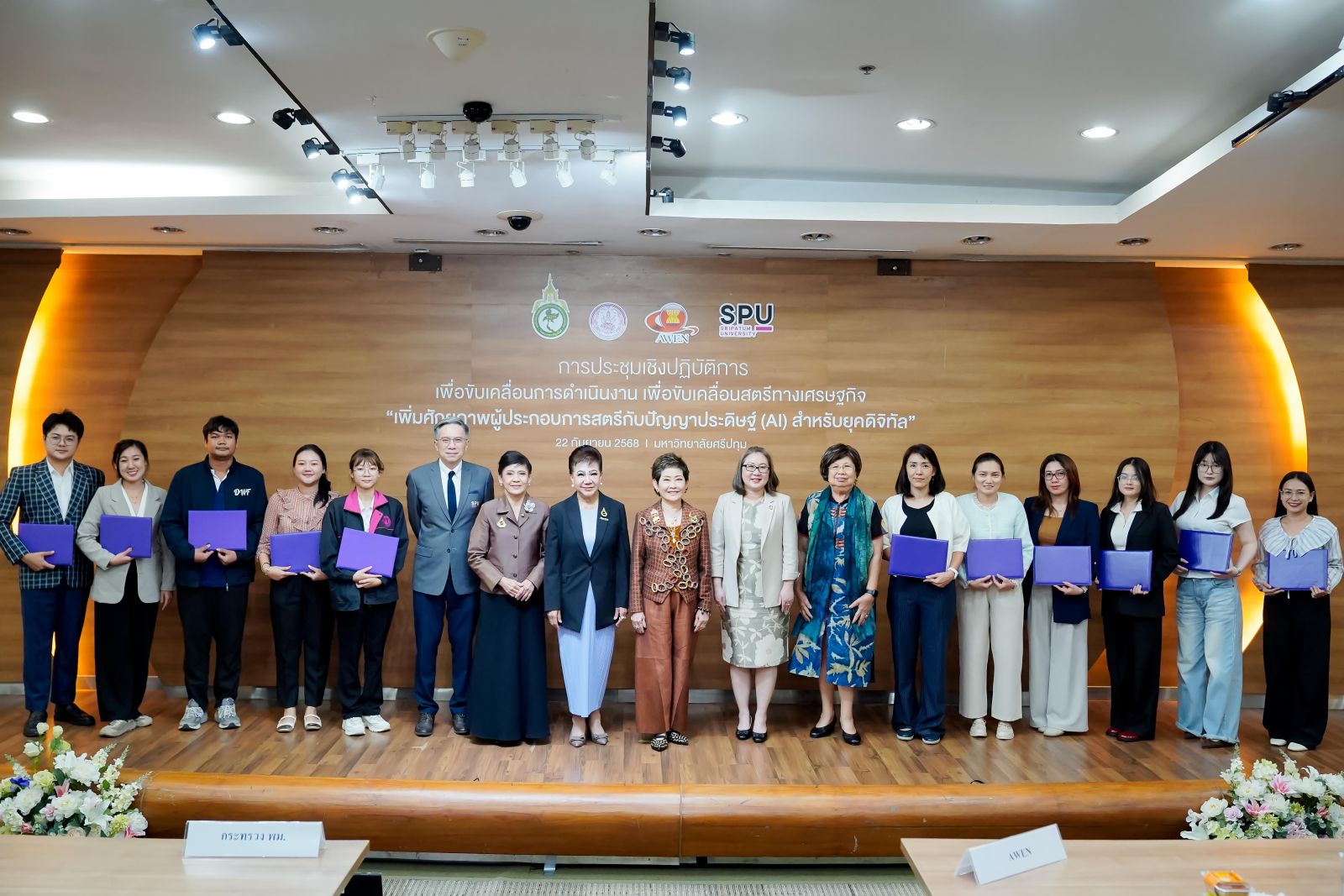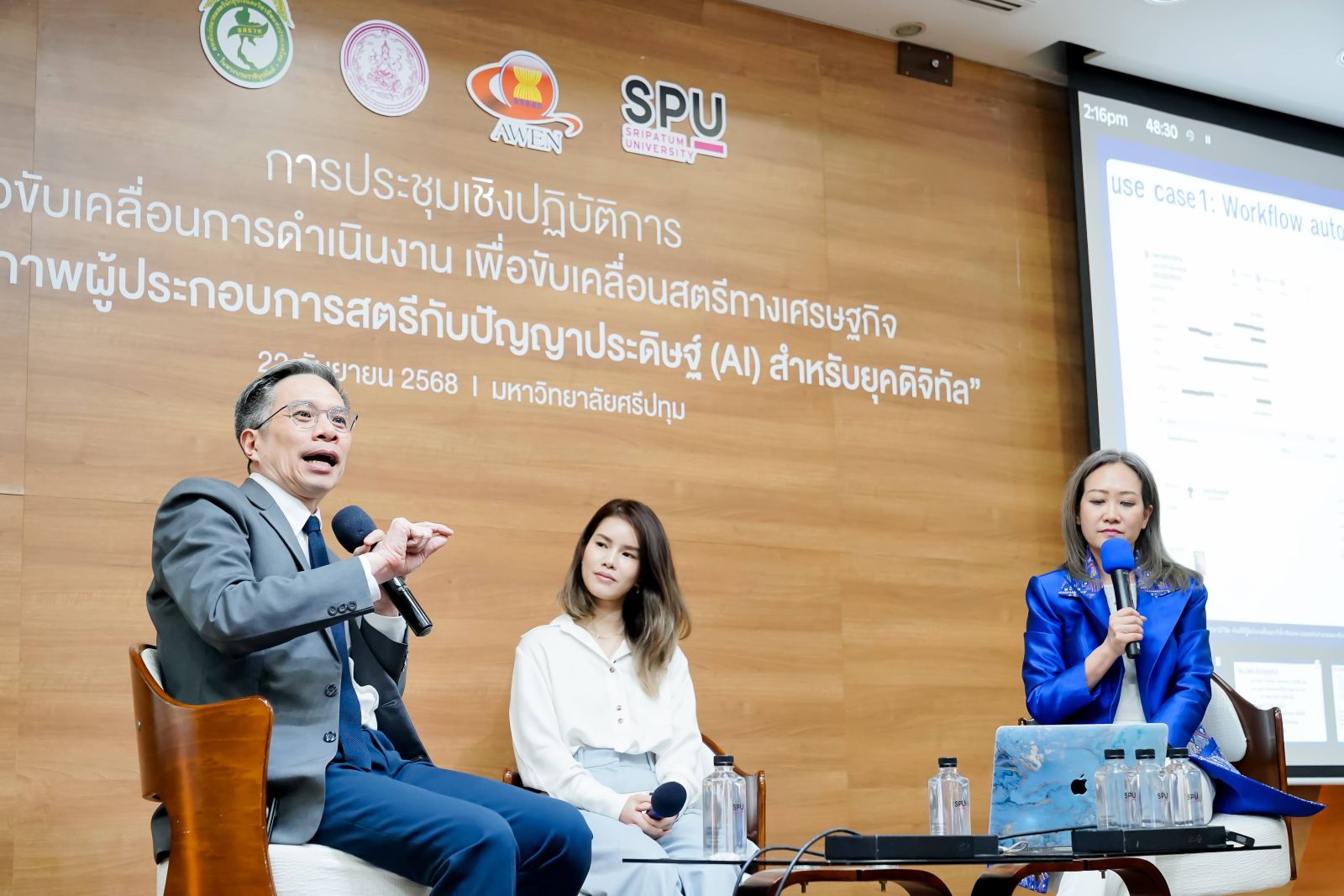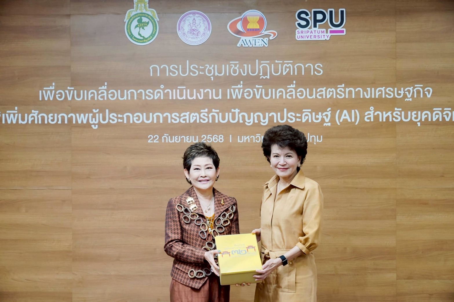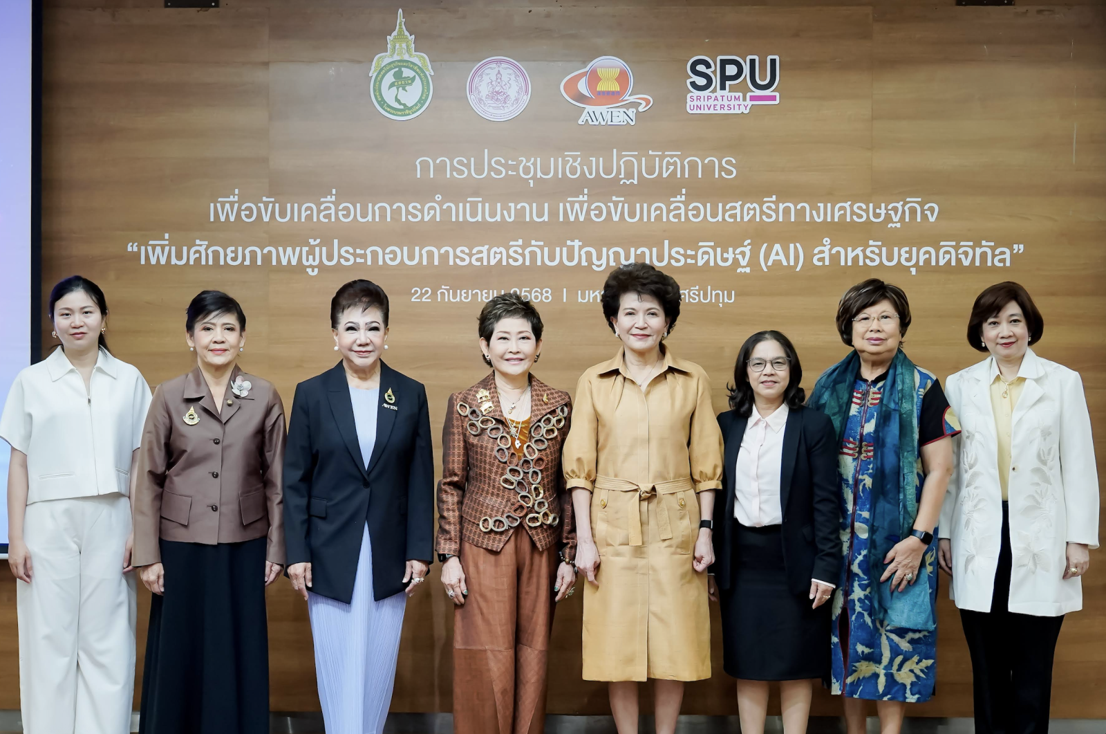 คุณหญิงณัฐิกา วัธนเวคิน อังอุบลกุล ประธานสหพันธ์สมาคมสตรีนักธุรกิจและวิชาชีพแห่งประเทศไทยในพระบรมราชูปถัมภ์ พร้อมด้วย ดร.หม่อมหลวงปรียพรรณ ศรีธวัช ประธานเครือข่ายผู้ประกอบการสตรีอาเซียน-ประเทศไทย (ASEAN Women Entrepreneurs Network-Thailand) หรือ AWEN ประเทศไทย ร่วมกับ อธิบดี แรมรุ้ง วรวัธ จากกรมกิจการสตรีและสถาบันครอบครัว กระทรวงการพัฒนาสังคมและความมั่นคงของมนุษย์ และ ดร.รัชนีพร พุคยาภรณ์ พุกกะมาน อธิการบดีมหาวิทยาลัยศรีปทุม เจ้าของรางวัล สุดยอดผู้ประกอบการสตรีอาเซียน ปี 2558 ได้ร่วมมือกันจัดประชุมเชิงปฏิบัติการ “เพิ่มศักยภาพผู้ประกอบการสตรีกับปัญญาประดิษฐ์ (AI) สำหรับยุคดิจิทัล” ขึ้น เมื่อวันจันทร์ที่ 22 กันยายน 2568 ณ มหาวิทยาลัยศรีปทุม โดยมี เบญจมาส แก่นเมือง รองอธิบดีกรมกิจการสตรีและสถาบันครอบครัว กระทรวงการพัฒนาสังคมฯ กล่าวเปิดการประชุมเชิงปฏิบัติการในช่วงเช้า และ กรรณนิกา เจริญลักษณ์ ผู้อำนวยการกองส่งเสริมความเสมอภาคทางเพศ กระทรวงการพัฒนาสังคมฯ กล่าวปิดการประชุมเชิงปฏิบัติการและมอบประกาศนียบัตรแก่กลุ่มผู้ประกอบการสตรี นักธุรกิจ และผู้ที่ต้องการพัฒนาทักษะปัญญาประดิษฐ์ (AI) ในยุคดิจิทัล ที่สนใจเข้าร่วมกว่า 100 คน ในช่วงเย็น