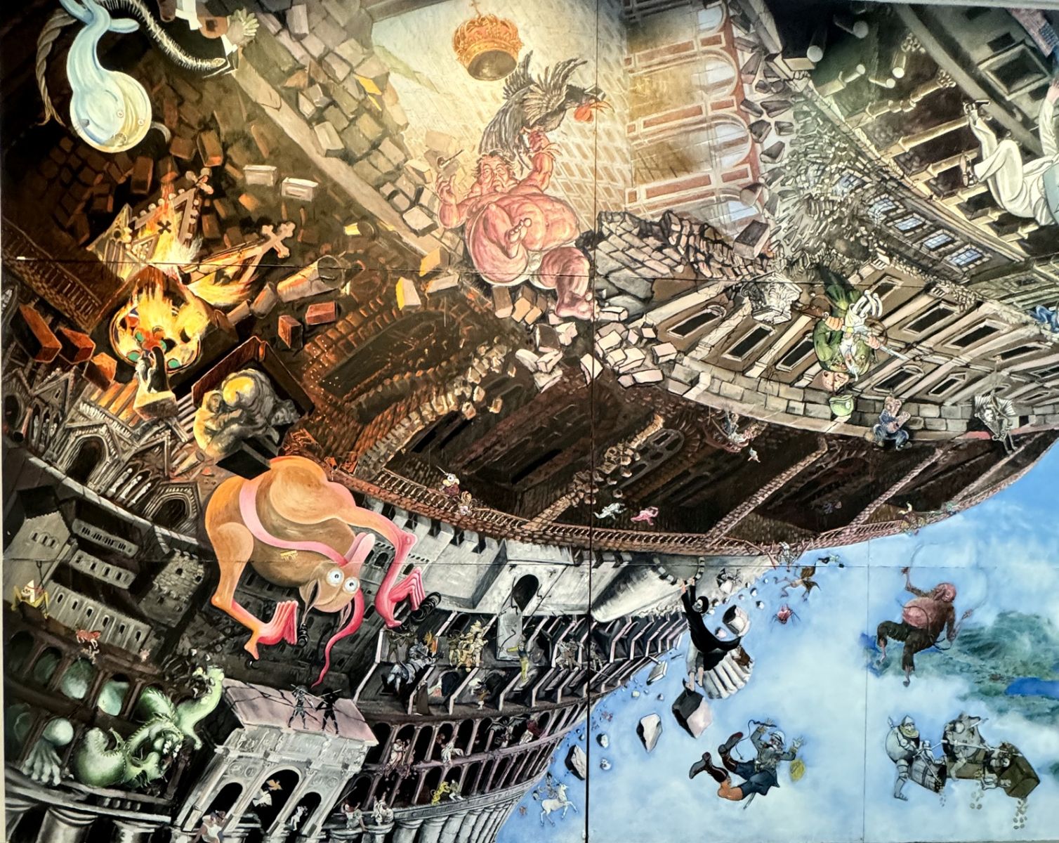 สำหรับ Tower of Babel ฉบับสวีเดนนั้นเป็นผลงานที่เป็นความร่วมมือของศิลปินหลายคนที่เรียกว่ากลุ่ม Hofbrigaden ประกอบด้วย Ulf Rahmberg, Stefan Teleman, Cilla Ericson, Julie Leonardsson และ Ingrid Olsson โดยมี Cilla Ericson เป็นศิลปินที่โดดเด่นสุด ผลงานชิ้นนี้เกิดจากจิตรกรรม 2 ชิ้นประกอบโดยชิ้นแรกชื่อ The Emperor’s New Clothes แต่ Stockholm Lokaltrafik ไม่ยินยอมให้จัดแสดงผลงานนี้ในนิทรรศการ "Brigadmåleri 1978" พวกเขาจึงนำมันไปจัดแสดงอยู่ที่ระเบียงที่มหาวิทยาลัย Lulea University of Technology อยู่ 40 ปี แต่เนื่องจากการปรับปรุงมหาวิทยาลัย ผลงานชิ้นนี้จึงจำเป็นต้องเคลื่อนย้ายอีกครั้ง กลุ่ม Hofbrigaden เลยตัดสินใจวาด Tower of Babel ทับผลงานชิ้นเดิมนี้ด้วยเรื่องราวที่ล้อเลียนนักการเมืองทั้งในสวีเดนและต่างประเทศจนกลายเป็นภาพวาดที่ใหญ่ที่สุดของสวีเดน การจัดแสดงนิทรรศการเดี่ยวของ Cilia Ecicson ใน Royal Academy of Fine Arts ภัณฑรักษ์จึงได้นำผลงานร่วมชิ้นนี้ของศิลปินมาจัดแสดงไว้ด้วย นักท่องเที่ยวจะเห็นว่าผลงานชิ้นนี้ใช้สีสันที่สดใส มีเรื่องราวที่ดูแปลกตายากที่จะเข้าใจ แต่เป็นไปในเชิงล้อเลียนแน่นอน อีกทั้งยังเกี่ยวข้องกับสถานการณ์ทั้งโบราณ และปัจจุบันสังเกตุได้จากชุดแต่งกายซึ่งก็ให้ความสนุกสนานเพลิดเพลินกับผู้ชมได้อย่างดีเลยทีเดียว