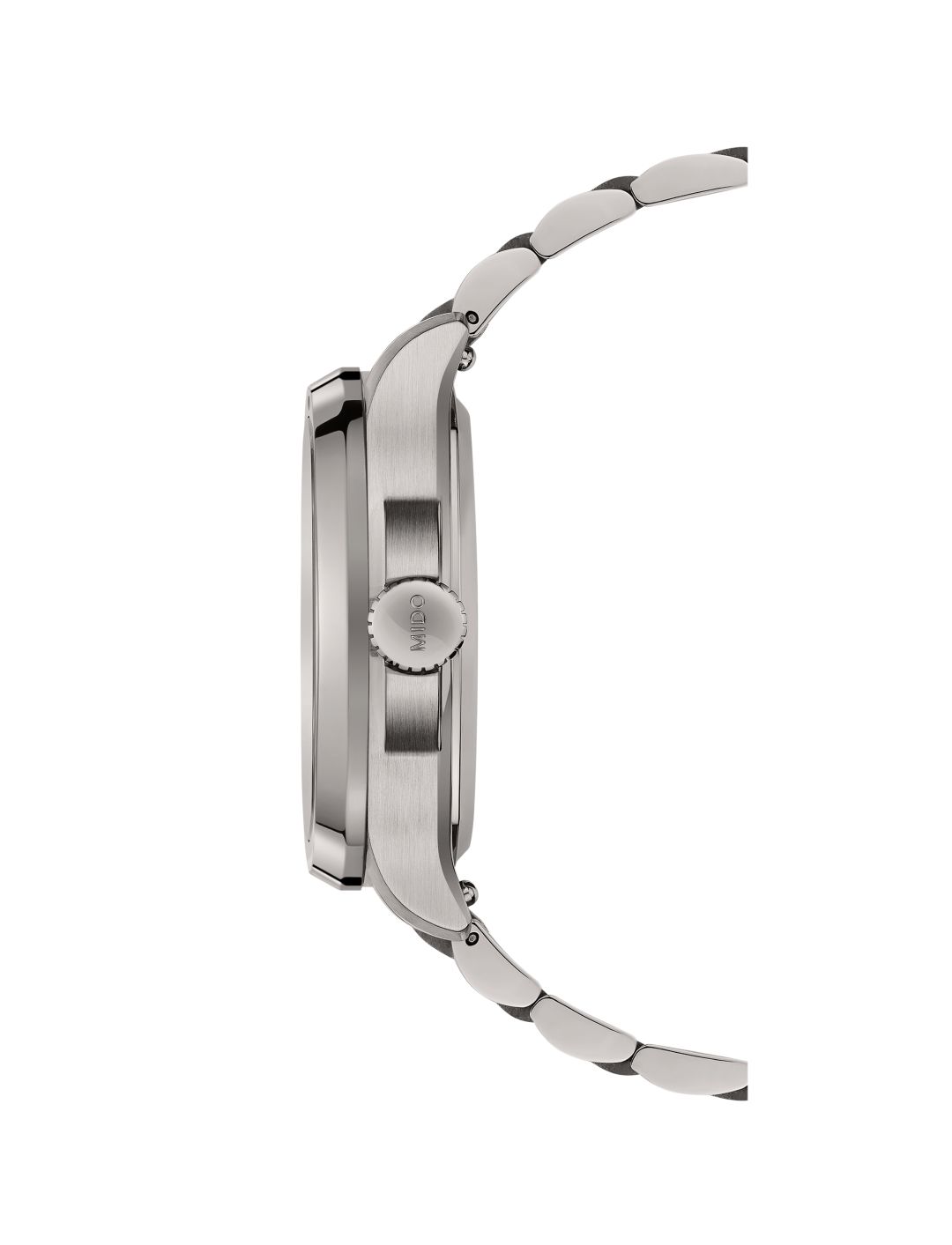 ด้านเข็มชั่วโมงและเข็มนาทีถูกเคลือบด้วยนิเกิลสีดำ ขัดเพชรทรงเหลี่ยม พร้อมเคลือบสารเรืองแสงสารเรืองแสงซูเปอร์ลูมิโนวา (Super-LumiNova®) เพื่อการอ่านค่าในที่แสงน้อยหรือยามค่ำคืน ขณะที่เข็มวินาทีถูกขัดเหลี่ยมเพชรเพื่อเพิ่มความเปล่งประกาย และด้านในหน้าปัดได้เสริมขอบแสดงนาที (Flange) เพิ่มความแม่นยำ ส่วนตัวเรือนด้านข้างติดตั้งเม็ดมะยมแบบขันเกลียว และระบบล็อกสายบานพับสลักโลโก้ MIDO ที่มาพร้อมแกนสปริงสำหรับถอดเปลี่ยนสายได้ง่าย และปุ่มกดเพื่อการสวมใส่สบาย ไม่รู้สึกหนักข้อมือ โดยฝาหลังมาในดีไซน์โปร่งใส เผยให้เห็นกลไกคาลิเบอร์ 80 (Caliber 80) ที่ตกแต่งด้วยลวดลาย Côtes de Genève และสลักโลโก้ MIDO พร้อมหมายเลขประจำเรือนอย่างประณีต สะท้อนความเชี่ยวชาญด้านงานฝีมือที่สืบทอดมาตั้งแต่ปี 1918 และครอบด้วยกระจกคริสตัลแซฟไฟร์ เคลือบสารกันการสะท้อนทั้งด้านในและด้านนอกเพื่อความคมชัดในการมองเห็นกลไกภายใน นาฬิกาเรือนนี้สามารถสำรองพลังงานได้นานสูงสุด 80 ชั่วโมง พร้อมบาลานซ์สปริงนิวาครอง (Nivachron™) ที่ช่วยต้านทานสนามแม่เหล็กและแรงกระแทกได้อย่างมีประสิทธิภาพ ทั้งยังรองรับการกันน้ำลึกถึง 10 บาร์ หรือ 100 เมตร