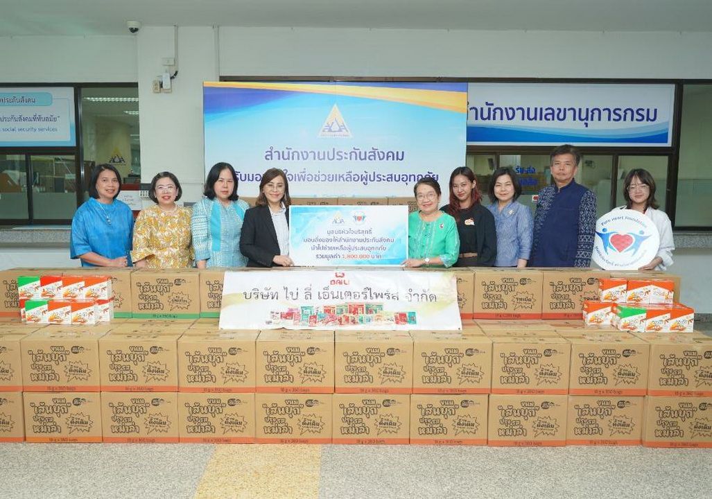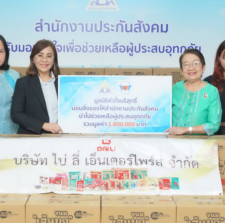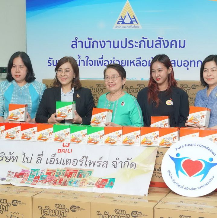 วันที่ 3 ตุลาคม 2568 นางเธียรรัตน์ นะวะมะวัฒน์ ประธานมูลนิธิหัวใจบริสุทธิ์ พร้อมด้วยนางสาวภัทรพร เอี่ยมระหงษ์ ผู้บริหารฝ่ายการตลาด บริษัท ไบ่ ลี่ เอ็นเตอร์ไพร์ส จำกัด ได้ร่วมส่งมอบเส้นบุกปรุงรสหม่าล่า จำนวน 500 ลัง มูลค่า 1,800,000 บาท โดยได้รับการสนับสนุนจากคุณสราญจิตร หวัง กรรมการบริษัท ไบ่ ลี่ เอ็นเตอร์ไพร์ส จำกัด ให้แก่สำนักงานประกันสังคม สำนักงานใหญ่ โดยมีนางสาวบุปผา เรืองสุด เลขาธิการสำนักงานประกันสังคม เป็นผู้รับมอบ เพื่อนำไปกระจายต่อยังประชาชนที่ได้รับผลกระทบจากสถานการณ์อุทกภัยในพื้นที่ต่างๆ