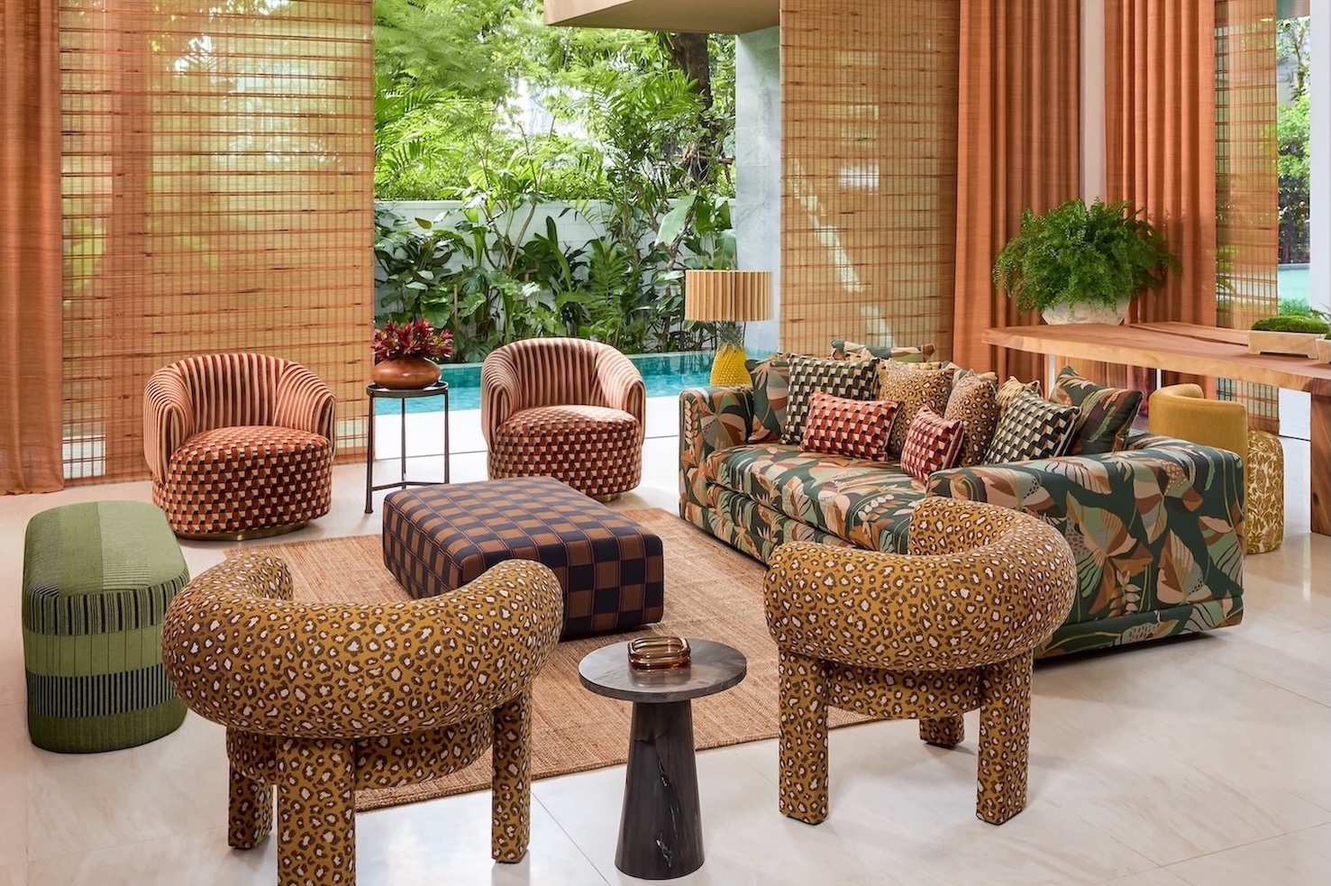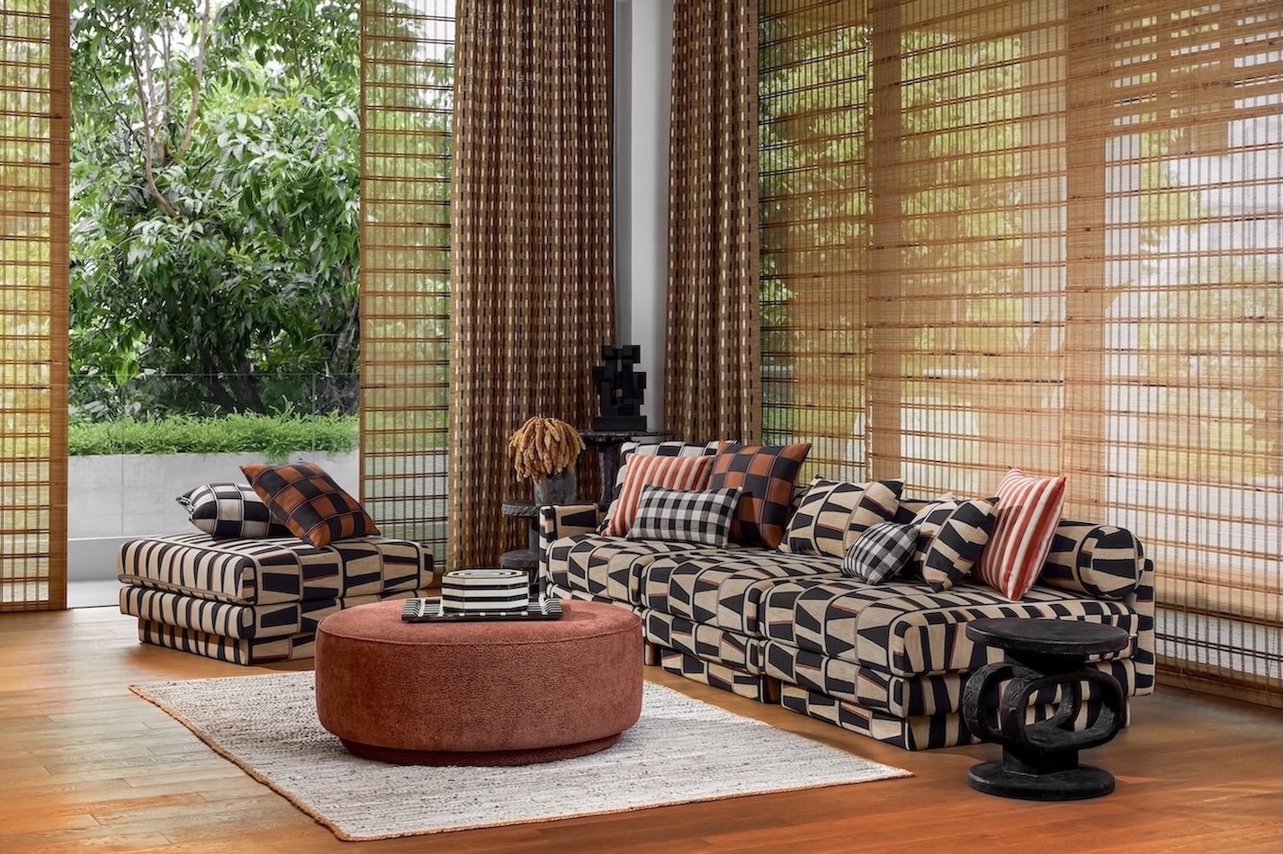 คอลเลกชันฤดูใบไม้ร่วง 2025 นำเสนอการใช้งานที่หลากหลาย ทั้งผ้าม่าน ผ้าบุเฟอร์นิเจอร์ และวอลเปเปอร์ ทอจากเส้นใยที่หลายรูปแบบ ตั้งแต่ผ้าแจ็คการ์ดไปจนถึงกำมะหยี่เนื้อละเอียด ทั้งยังโดดเด่นด้วยลายปรินต์เปี่ยมดีเทล และงานปักแสนประณีต ผ้าทุกแบบในคอลเลกชันออกแบบมาให้นำไปใช้งานร่วมกันได้อย่างลงตัว อาทิ การนำลวดลายที่ได้แรงบันดาลใจจากธรรมชาติ อย่างปาล์ม ไผ่ และลายจากการทอแบบดั้งเดิม มาเลเยอร์กับแพทเทิร์นเรขาคณิต ทำให้เกิดเป็นความสมดุลระหว่างลายที่สะดุดตากับความเรียบง่ายสบายตา นอกจากนี้ พาเลตสีที่ครอบคลุมทั้งเฉดเอิร์ธโทนอบอุ่นและสีสดใสเปี่ยมชีวิตชีวา ก็ช่วยสร้างบรรยากาศที่มีมิติและน่าค้นหา เมื่อนำมามิกซ์เข้าด้วยกัน