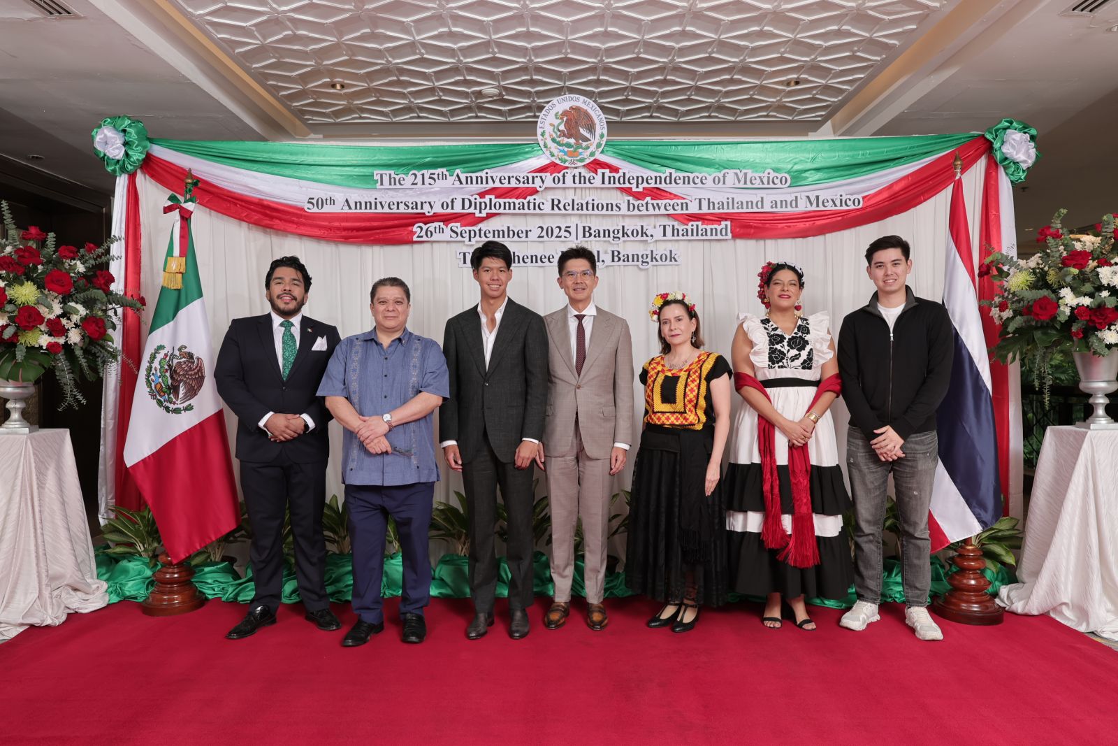 สถานเอกอัครราชทูตสหรัฐเม็กซิโก ประจำประเทศไทย จัดงานเฉลิมฉลองยิ่งใหญ่ในโอกาสสองวาระสำคัญ วันประกาศเอกราชภาพครบรอบ 215 ปี ของสหรัฐเม็กซิโก และฉลองครบรอบ 50 ปี แห่งการสถาปนาความสัมพันธ์ทางการทูตระหว่างราชอาณาจักรไทยและสหรัฐเม็กซิโก ณ ห้องแกรนด์ฮอลล์ โรงแรมดิ แอทธินี พลาซ่า โดยมีบุคคลสำคัญจากแวดวงต่างๆ ร่วมแสดงความยินดี พร้อมด้วยชาวเม็กซิกันที่พำนักอยู่เมืองไทยวร่วมฉลองอย่างอบอุ่น
