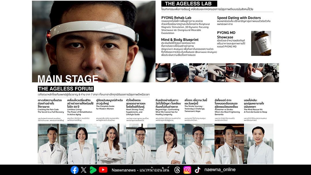 เปียง รีแฮบบิลิเทชัน กรุ๊ป (PYONG Rehabilitation Group) กลุ่มบริษัทประกอบธุรกิจด้านเวชศาสตร์ฟื้นฟูครบวงจร ประกาศจัดงาน Ageless Summit 2025 การประชุมด้านสุขภาพครั้งประวัติศาสตร์ของไทย เพื่อเปิดมุมมองใหม่และพาคุณออกจากความเชื่อเดิมๆ เกี่ยวกับอายุและความเสื่อมถอย งานจะจัดขึ้นในวันเสาร์ที่ 1 พฤศจิกายน 2568 เวลา 10.00 – 16.00 น. ณ Gaysorn Urban Resort ชั้น 19 อาคารเกษรทาวเวอร์ โดยเปิดให้ผู้สนใจเข้าร่วมงานได้โดยไม่มีค่าใช้จ่าย