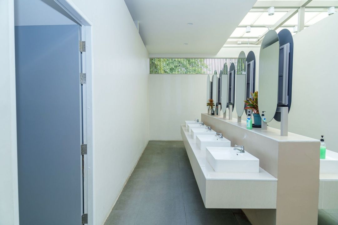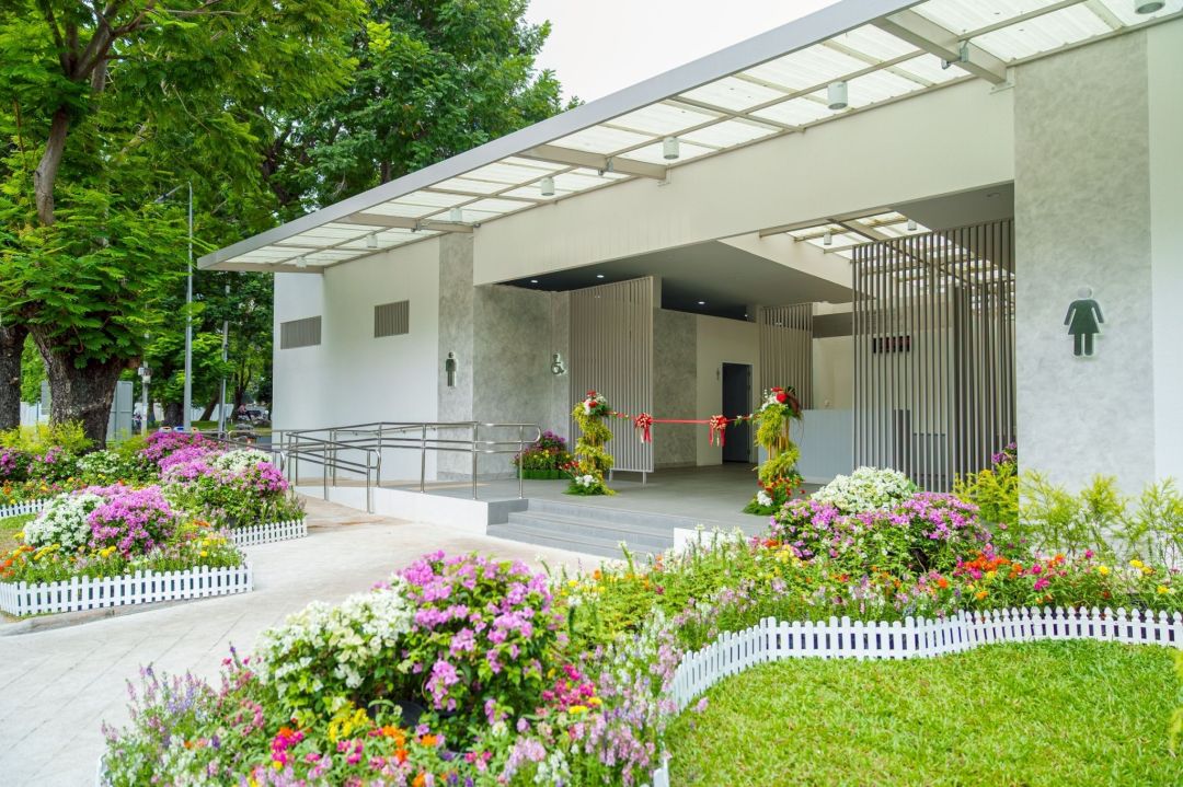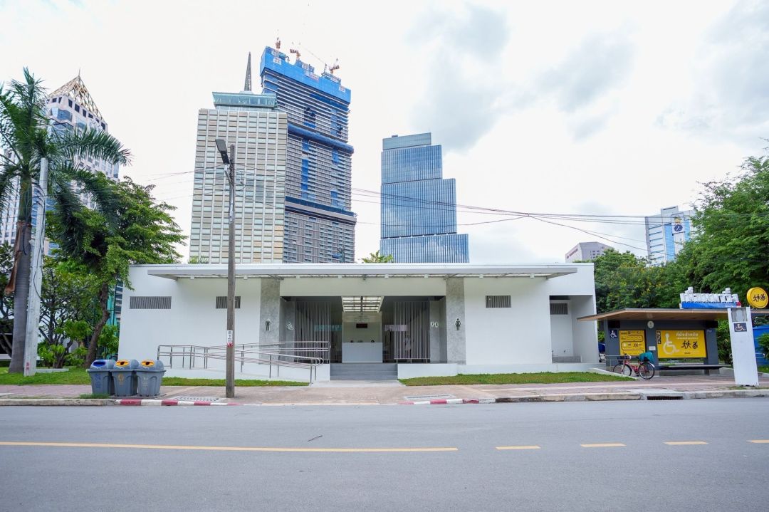 อาคารห้องน้ำสาธารณะ 2 อาคารหลัก ตั้งอยู่บริเวณถนนวิทยุและถนนพระราม 4 ก่อสร้างใหม่ทั้งหมดแทนอาคารเดิม ครอบคลุมงานระบบ โครงสร้าง สุขภัณฑ์ และการตกแต่ง ออกแบบตามหลัก Passive Design ที่เน้นการใช้แสงธรรมชาติเพื่อลดการใช้พลังงาน พร้อมระบบถ่ายเทอากาศที่ดี และ Universal Design มาตรฐานสากล เพื่อรองรับการใช้งานของทุกกลุ่ม ทุกเพศวัย รวมถึงครอบครัว ผู้สูงอายุ และผู้พิการแต่ละอาคาร มีพื้นที่ใช้สอย 298 ตารางเมตร ประกอบด้วย ห้องสุขาชาย 10 ห้อง ห้องสุขาหญิง 12 ห้อง ห้องน้ำคนพิการ 1 ห้อง ห้องน้ำครอบครัว 1 ห้อง ห้องอาบน้ำชาย-หญิงอย่างละ 4 ห้อง และล็อกเกอร์ชาย-หญิงอย่างละ 27 ตู้ เป็นต้น