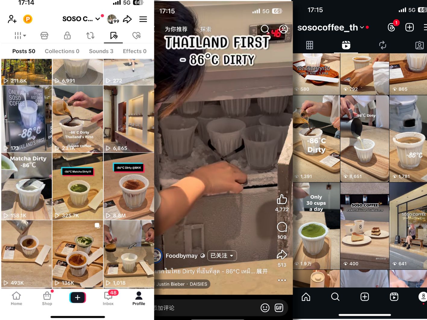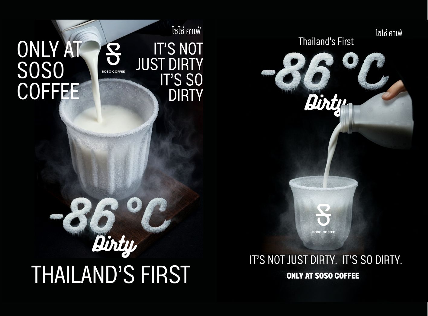 SoSo Coffee คาเฟ่พรีเมียมสัญชาติไทย ภายใต้การบริหารของ บริษัท โบเบน แบรนด์ เมเนจเมนท์ จำกัด ประกาศเปิดตัวเมนูซิกเนเจอร์ “Dirty Coffee -86°C” อย่างเป็นทางการ จัดได้ว่าเป็น “Thailand’s First -86°C Dirty” ในประเทศไทย ที่กาแฟร้อนถูกเสิร์ฟใน “แก้วเย็นติดลบ” (-86°C) กลายเป็นกระแสแรงในโลกออนไลน์ จนมียอดชมคลิปบน TikTok ทะลุ 8.79 ล้านครั้ง และติดอันดับ “3 คำฮิตยอดค้นหาในกรุงเทพฯ” ภายในเวลาไม่นาน พร้อมยกระดับ Café Economy ของคนรุ่นใหม่