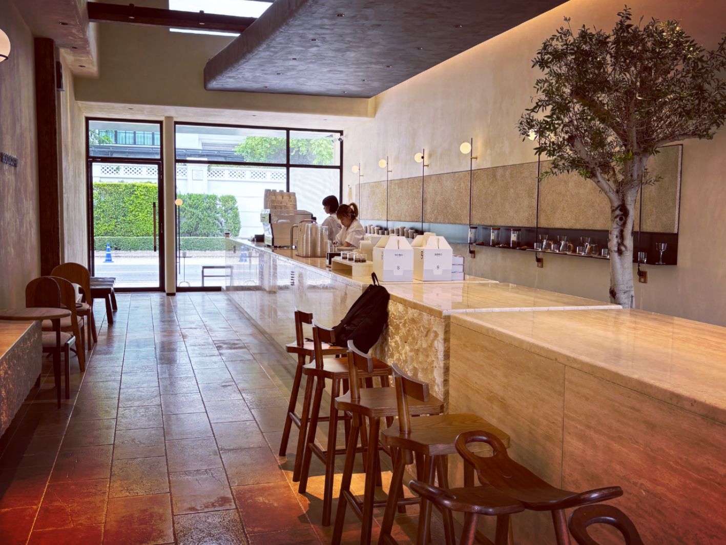 ภายในแบ่งเป็นโซน Speed Bar สำหรับสายเร่งรีบที่ต้องการความเข้มข้นรวดเร็ว และโซน Slow Bar สำหรับคอกาแฟสายดริปที่อยากใช้เวลาอย่างมีสุนทรีย์ ใช้เมล็ดกาแฟจากเอธิโอเปีย โคลอมเบีย และคอสตาริก้า พร้อมเมนูชาอย่าง White Peach Oolong และ Japanese Sencha แบบขวดกลับบ้าน รวมถึงเบเกอรี่และสินค้าพรีเมียม (Merchandise) ให้เลือกช้อป