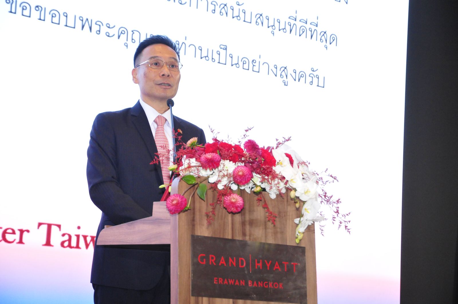 บัดนี้ ขอให้เราหันมาดูศักยภาพอันมหาศาลของความร่วมมือระหว่างไต้หวันและไทย ในปี ค.ศ. 2024 ไต้หวันมีการลงทุนเป็นอันดับ 4 ของไทย และเป็นคู่ค้าอันดับ 5 ของไทย ทำให้ไต้หวันเป็นพันธมิตรที่เหมาะสมที่สุดสำหรับการพัฒนาเศรษฐกิจไทยในอนาคต เริ่มตั้งแต่ในช่วงทศวรรษ 1960 เป็นต้นมา โครงการหลวง (Royal Project) เป็นโครงการอันเริ่มมาจากพระราชดำริ ในพระบาทสมเด็จพระบรมชนกาธิเบศร มหาภูมิพลอดุลยเดชมหาราช บรมนาถบพิตร รัชกาลที่ 9 ในเวลาต่อมา แม้ความสัมพันธ์ทางการระหว่างไทยและไต้หวันจะมีการเปลี่ยนแปลง แต่โครงการนี้ก็ยังคงเจริญรุ่งเรืองอย่างต่อเนื่อง ก่อเกิดประโยชน์แก่ชาวไทยกว่า 200,000 คนใน 7 จังหวัดภาคเหนือของประเทศไทย ช่างเป็นเรื่องบังเอิญที่ตอนนี้มีชาวไต้หวันนำพักอยู่ในประเทศไทยประมาณ 200,000 คน เช่นกัน และมีบางส่วนอยู่ที่นี่ในค่ำคืนนี้พอดี จะขอกล่าวถึงสถาบันการศึกษาชั้นนำหนึ่งที่แห่งตั้งอยู่ในประเทศไทย คือสถาบันเทคโนโลยีแห่งเอเชีย (AIT) สถาบันแห่งนี้ได้พัฒนาบุคลากรดีเด่นชาวไต้หวันจำนวนมาก บางท่านได้เป็นถึงรัฐมนตรี นี่ถือเป็นตัวอย่างสำคัญของความร่วมมือระหว่างไต้หวันและไทย ซึ่งปัจจุบันสถานการณ์เปลี่ยนไป ประเทศไทยได้กลายเป็นที่มานักศึกษาชาวต่างชาติอันดับที่ 6 ของไต้หวัน โดยปีที่แล้ว มีนักศึกษาชาวไทยจำนวน 4,700 คนไปศึกษาต่อที่ไต้หวัน