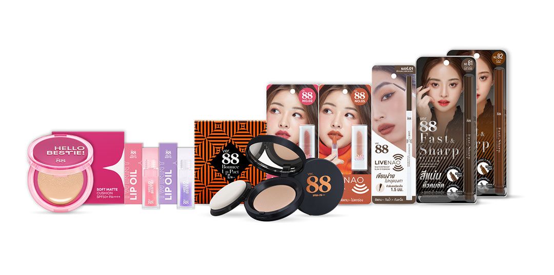 โดยผลิตภัณฑ์แรกคือ “แป้งดินน้ำมัน” ที่โด่งดังทันที ตามมาด้วยลิปสติก รองพื้น และบลัชออน “ver.88 สะท้อนความเชื่อของผู้หญิงยุคใหม่ว่า ความสวยไม่จำเป็นต้องแพง แต่ต้องใช้แล้วมั่นใจได้จริง”
