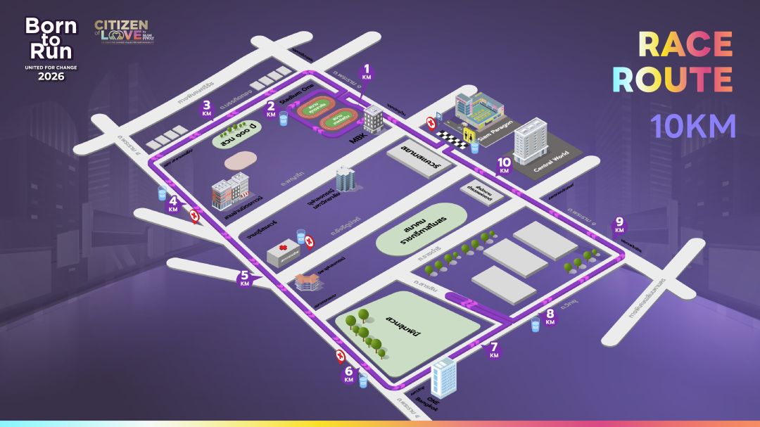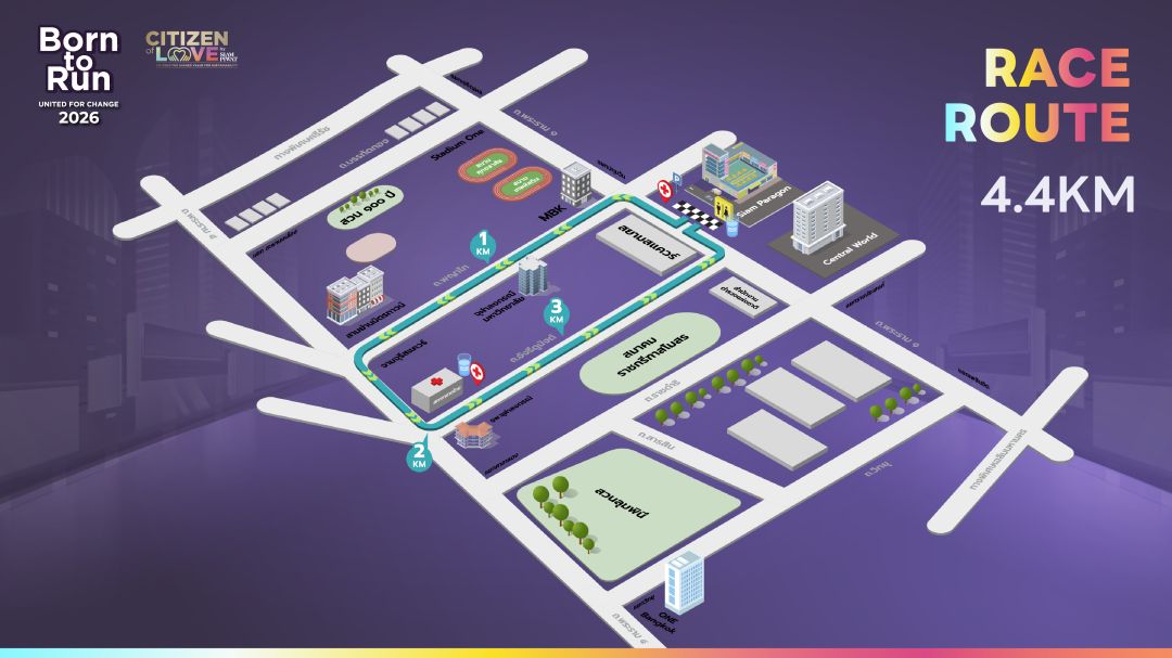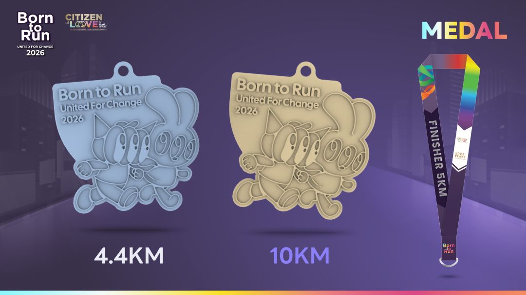 กิจกรรมวิ่งการกุศล “Citizen of Love : Born to Run 2026 United for Change” จะจัดขึ้นในวันอาทิตย์ที่ 18 มกราคม 2569 ณ สยามพารากอน แบ่งระยะการแข่งขันออกเป็น 2 ประเภท ได้แก่ มินิมาราธอน 10.5 กิโลเมตร และฟันรัน 4.4 กิโลเมตร เปิดรับสมัครผู้เข้าร่วมกิจกรรมผ่านทางออนไลน์ https://thai.fit/c/BTR2026 ตั้งแต่วันนี้เป็นต้นไป ค่าสมัครระยะมินิมาราธอน 899 บาท ระยะฟันรัน 799 บาท พิเศษสำหรับสมาชิก ONESIAM SuperApp สามารถรับโค้ดส่วนลด 100 บาท เพื่อสมัครร่วมกิจกรรมราคาพิเศษได้ทุกระยะ โดยผู้ร่วมกิจกรรมจะได้รับเสื้อวิ่งที่ระลึกสุดพิเศษออกแบบโดยศิลปินสตรีทอาร์ต และป็อปอาร์ต BENZILLA เจ้าของคาแรคเตอร์สามตายอดฮิต และผู้ร่วมกิจกรรมที่วิ่งเข้าเส้นชัยจะได้รับเหรียญรางวัลรักษ์โลกสุดพิเศษออกแบบโดย BENZILLA นอกจากจะดีไซน์น่ารักเหมาะแก่การเก็บสะสมแล้ว ยังสามารถนำมาใช้ประโยชน์เป็นที่เปิดขวดน้ำได้ ตัวเหรียญยังทำมาจากฝาขวดน้ำพลาสติกที่ได้มาจากการคัดแยกขยะภายใต้โครงการ Journey to Zero Waste ของกลุ่มบริษัทสยามพิวรรธน์ ส่งต่อให้ QUALY DESIGN แบรนด์ผลิตภัณฑ์ไลฟ์สไตล์รักษ์โลกเป็นผู้ผลิต