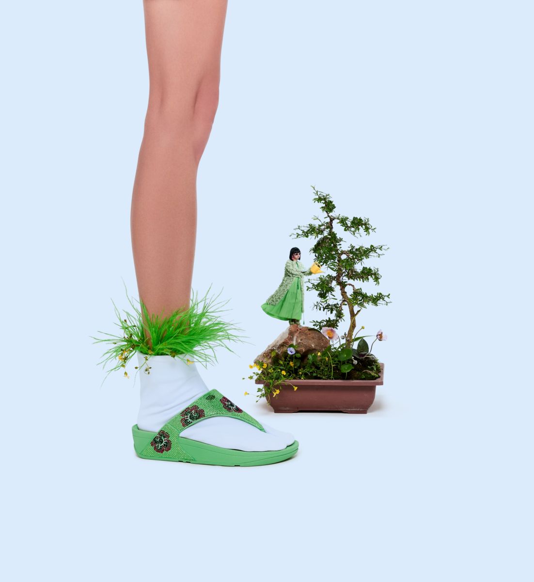 คอลเลกชัน “Waltz of the Meadow” เป็นการผสมผสานเทคโนโลยีแห่งความสบายในการสวมใส่รองเท้า อันเป็นเอกลักษณ์ของ FITFLOP เข้ากับงานศิลปะสุดจินตนาการของ ยูน – ปัณพัท ทำให้คอลเลกชันนี้มีดีไซน์ที่โดดเด่น ใช้งานได้จริง และเต็มไปด้วยเสน่ห์ชวนหลงใหล โดยรองเท้าทุกคู่ถูกออกแบบมาให้สวมใส่สบายตลอดวัน พร้อมทั้งสะท้อนความเป็นตัวเองและความคิดสร้างสรรค์ ผ่านรองเท้า 3 รุ่น ได้แก่ Lulu X Phannapast Fairy Bouquet Toe-Post Sandals, Lulu X Phannapast Pansy Paradiso Toe-Post Sandals และ Rally X Phannapast Meadow Melody Strap Sneakers
