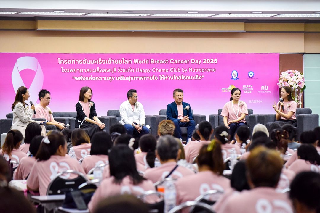 โครงการวันมะเร็งเต้านมโลก World Breast Cancer Day 2025 โดยโรงพยาบาลมะเร็งลพบุรี ร่วมกับ Happy Chemo Club by NUTREPREME ที่จัดขึ้นภายใต้แนวคิด “พลังแห่งความสุข” (The Power of Happiness) ในครั้งนี้จึงไม่เพียงเป็นกิจกรรมเพื่อรำลึกถึงวันมะเร็งเต้านมโลก แต่ยังเป็นพื้นที่แห่งความรู้ ความสุข ความหวัง และพลังใจ ที่ทุกคนสามารถแบ่งปันและรับกลับไปส่งต่อให้ผู้ป่วยมะเร็งและคนรอบข้างได้อย่างแท้จริง