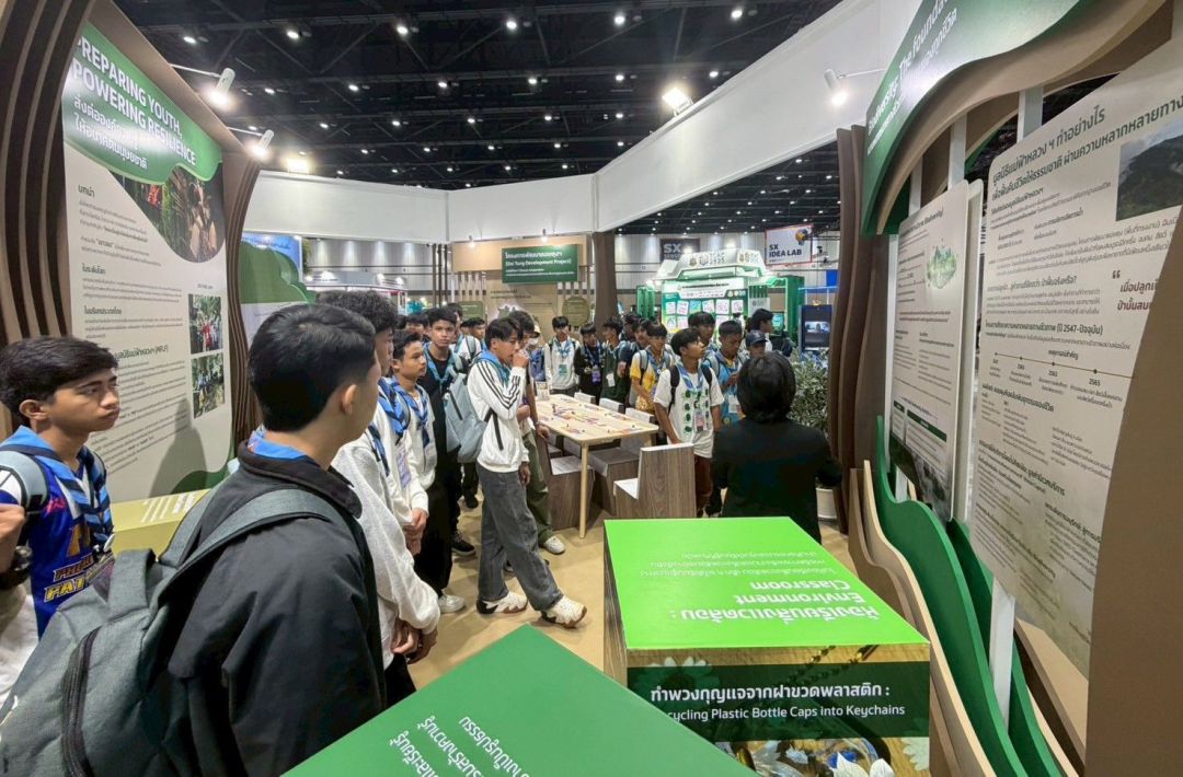 คณะเยาวชน โครงการ “ สานใจไทย สู่ใจใต้” รุ่นที่ 45 จากพื้นที่ 5 จังหวัดชายแดนใต้ จำนวน 320 คน ได้แก่ จังหวัดปัตตานี นราธิวาส สตูล ยะลา และสงขลาเข้าเยี่ยมชมและเรียนรู้ศึกษาแนวทางขับเคลื่อนชุมชน ผ่านนิทรรศการแห่งความยั่งยืน Sustainability Expo 2025 จัดโดย บริษัท ไทยเบฟเวอเรจ จำกัด (มหาชน) ณ ศูนย์การประชุมแห่งชาติสิริกิติ์ เพื่อนำความรู้ที่ได้กลับไปพัฒนาบ้านเกิดตัวเอง ภายในงานน้องๆ ได้พบกับนิทรรศการความยั่งยืนจากหน่วยงานชั้นนำของประเทศ พร้อมเรียนรู้แนวทางการดำเนินการ Repartment Store เพื่อสร้างคุณค่าให้กับ “สิ่งของของนอกสายตา” เพื่อส่งต่อสิ่งของที่เราไม่ได้ใช้แล้ว ส่งต่อผู้ที่ยังต้องการสิ่งของนั้น ทำให้เกิดระบบหมุนเวียนทรัพยากรที่ทรงคุณค่าก่อให้ประโยชน์กับทุกคนทั้งผู้ให้และผู้รับซึ่งสามารถนำของเหล่านั้นกลับมาใช้ประโยชน์ต่อได้และยังเป็นการลดปริมาณของเหลือทิ้งให้กับโลก อีกทั้งยังได้รับความรู้ ประสบการณ์และการสร้างแรงบันดาลใจในการเริ่มต้นทำธุรกิจจากนักศึกษา โครงการ Beta Young Entrepreneur มหาวิทยาลัยหอการค้าไทยที่ได้มาแบ่งปันเรื่องราวการทำธุรกิจตั้งแต่เริ่มต้น ซึ่งในระหว่างทางมีการพัฒนา ปรับปรุง และต่อยอดจนสามารถนำมาเป็นอาชีพได้ เพื่อประโยชน์ให้น้องๆ นำกลับไปประยุกต์ใช้ในพื้นที่ 5 จังหวัดชายแดนใต้อย่างยั่งยืนต่อไป