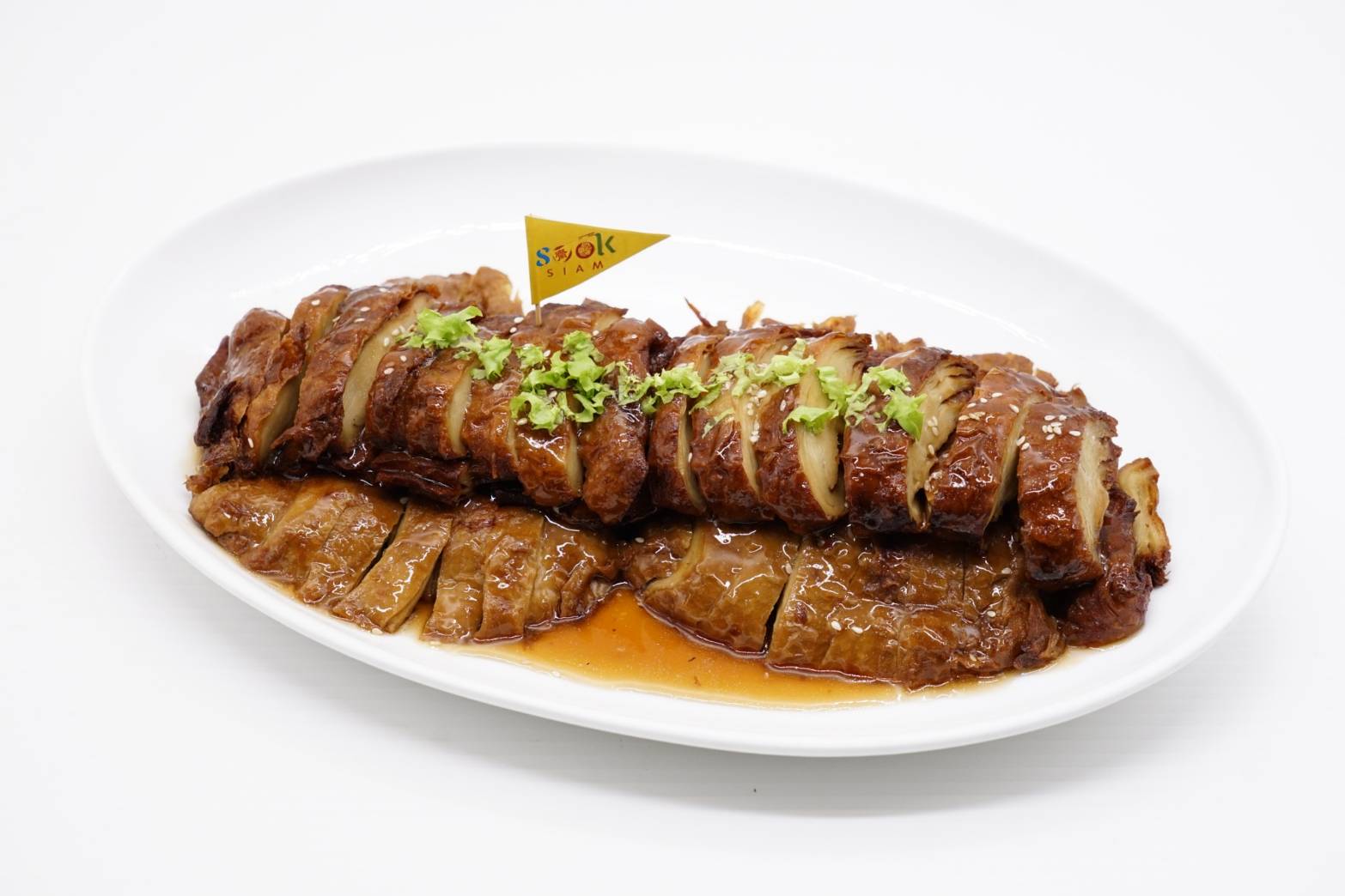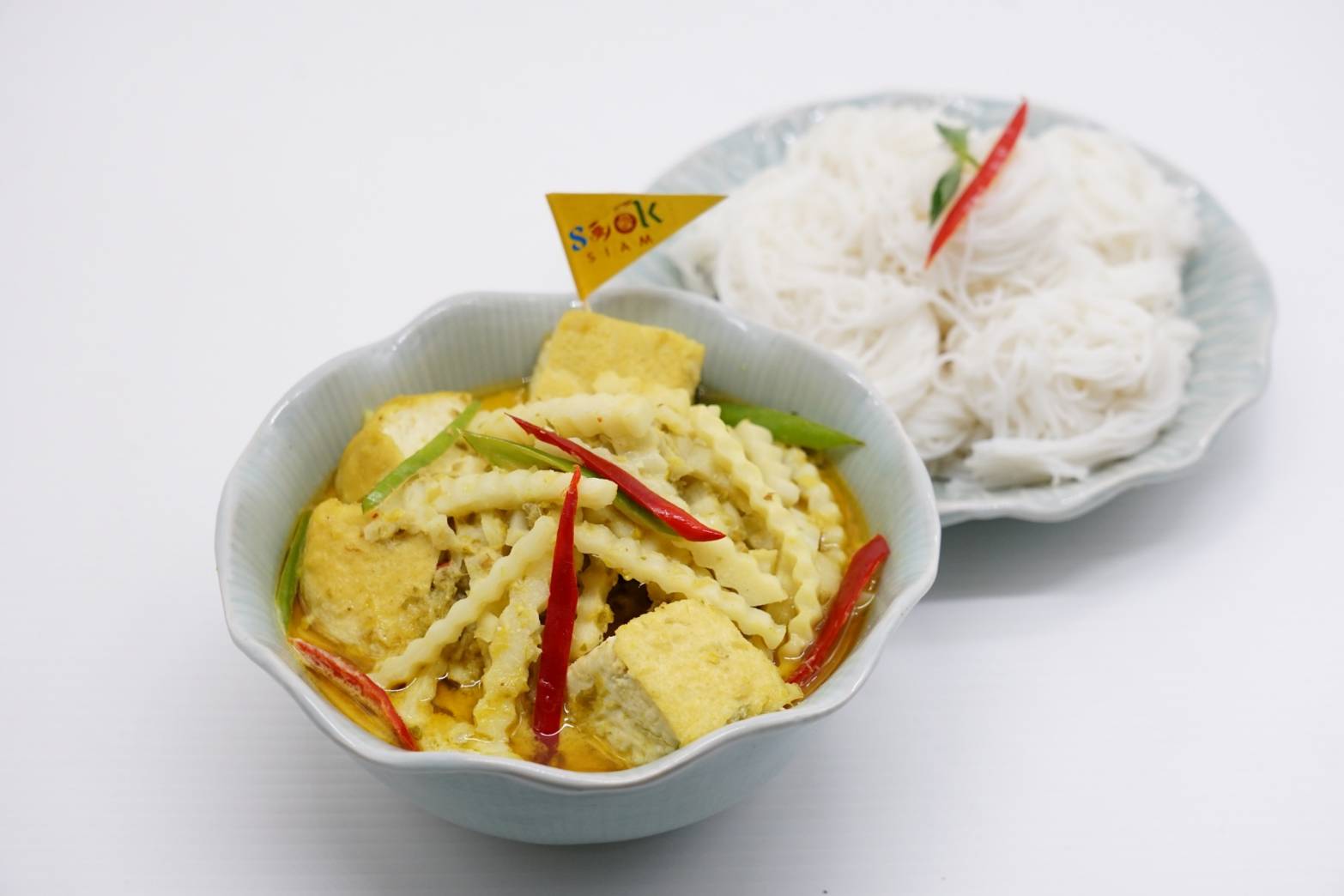 สำหรับเมนูอาหารไทยที่เมืองสุขสยามจัดเตรียมไว้เสิร์ฟในงาน “อิ่มบุญ อิ่มเจ 4 ภาค” อาทิ ภาคกลาง ได้แก่ ข้าวอบเผือก, ผัดหมี่ซั่ว เจ, เป็ดพะโล้เจ, กะหล่ำปลีตุ๋นเห็ดหอม, ผัดคะน้าฮ่องกงเห็ดหอม, ขนมจีนแกงเขียวหวานยอดมะพร้าว, เต้าหู้ดำผัดกะเพรา, เต้าเจี้ยวหลนเจพร้อมผักสด, ภาคใต้ จัดจ้านกับ คั่วกลิ้งเจ, ภาคอีสาน แซบหลายด้วย ส้มตำเจ, น้ำตกเจ ส่วนภาคเหนือ มีน้ำพริกอ่องเจและน้ำพริกหนุ่มเจพร้อมผักสด และที่พิเศษสุดคืออาหารเจฟิวชั่นที่รังสรรค์ทั้งสไตล์เอเซียและยุโรปมาให้เลือกชิมถึง 10 เมนู ได้แก่ สปาเก็ตตี้เพสโต้กุ้งทอง , แฮมเบิร์กข้าวเหนียวก้อนคู่ใจ , สปาเก็ตตี้ซอสหลนน้ำชุบหยำเจ , สปาเก็ตตี้โบโลเนสเจคู่โคโรเกะ , ข้าวยำเกาหลี (bibimbub) , ถั่วแขกผัดพริกเสฉวนหมาล่า , ไช่กัวเจ เคาหยกเจ , ข้าวอบฟักทอง , ลาบเต้าหู้เจ , ฟัวกราส์(ตับห่าน)เจ, ข้าวแฮมเบิร์กเจซอสเดมิกลาส นอกจากนี้ยังมี ชุดข้าวต้ม ใบปอผัด, เกี่ยมฉ่ายน้ำมันงา, กานาฉ่าย และ ชุดของทอด ขนมขาหมู ตือคาโค้วเจ, เต้าหู้ม้ง ที่หาทานยาก, เผือกทอด, ไชเท้าทอด, ข้าวโพดทอด, เต้าหู้ทอด, จ้อเจทอด, กวงเจียงไชเท้าทอด, กวงเจียงเผือก ให้เลือกอร่อย นอกจากนี้ยังมีการอัญเชิญ พระโพธิสัตว์กวนอิม ปางพันกร มาประดิษฐานบริเวณประตูสุขสุวรรณศาลา ณ เมืองสุขสยาม ให้ประชาชนได้ขอพรเพื่อความสิริมงคลพร้อมจัดการแสดงทางวัฒนธรรมไทย-จีน เสริมบรรยากาศในช่วงเทศกาลกินเจ ณ ลานเมือง 2 เมืองสุขสยาม ไอคอนสยาม ชั้น G