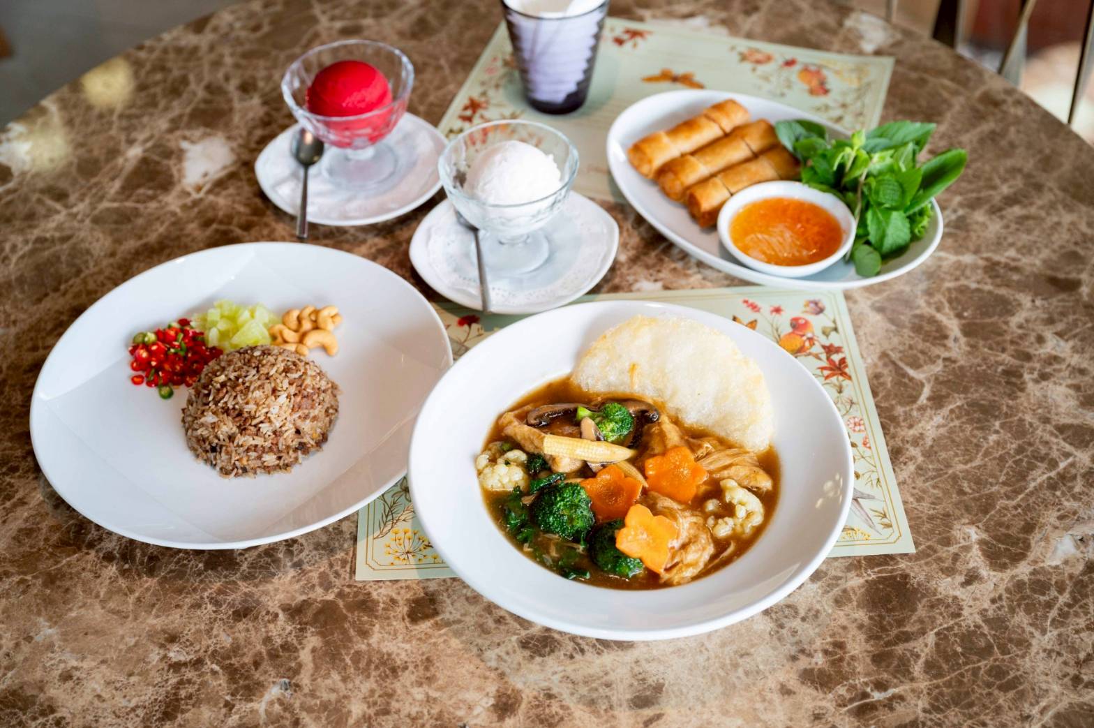 พลาดไม่ได้กับ “KANORI Hand Roll Bar” ร้านอาหารญี่ปุ่นสไตล์แฮนด์โรลแสนอร่อยซึ่งจับมือกับ Plantiful แบรนด์ Plant Based ชื่อดังสร้างสรรค์เซ็ตเมนูพิเศษ “Kanori x Plantiful” เพื่อต้อนรับเทศกาลเจโดยเฉพาะ ประกอบด้วย Unagi Vegan มะเขือม่วงเทอริยากิ และแตงกวาเข้ากันอย่างลงตัว ที่ให้ความรู้สึกเหมือนทานปลาไหลย่าง, Mushroom Truffle เห็ดชิเมจิและออรินจิ พร้อมแตงกวา กับทรัฟเฟิลมาโย, Tomato Akami Vegan โรลมะเขือเทศกับใบไอบะ ให้ความรู้สึกสดชื่นเหมือนทานทูน่า และปิดท้ายด้วย Tofu Yuzu Beetroot เต้าหู้ บีทรูท และซอสพลัม นอกจากนี้ยังมี “Coffee Beans by Dao” ร้านดังในใจใครหลายคนมาพร้อมเมนู ข้าวผัดหนำเลี๊ยบเจ, ก๋วยเตี๋ยวราดหน้าฟองเต้าหู้ตุ๋นเจ, ปอเปี๊ยะทอดเจ และของหวานอย่างไอศครีมวนิลา และมิกซ์เบอร์รี่ แต่ละจานอร่อยถึงรสจนแทบลืมว่าเป็นอาหารเจ และร้านอาหารสไตล์เวียดนาม “Ăn Cơm Ăn Cá” แนะนำ เฝอหมูเจ เปาะเปี๊ยะทอดไส้เผือกหอม และขนมจีนหมูย่างเจ และร้าน “รส'นิยม” เมนูยำขนมจีนเจ ผัดไทยสุโขทัยเจ และก๋วยเตี๋ยวต้มยำสุโขทัยหมูตำลึงเจ รวมถึงร้าน “Greyhound Café” ชั้น 2 ก็มีเมนูอาหารเจแสนอร่อยไว้เช่นกัน