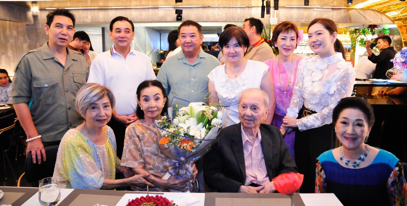 เจ้าของวันเกิดพร้อมหน้าลูกๆ สฤษดิ์ – สารัชถ์ – สานิต รัตนาวะดี และหลานๆ วรุณพร สุพรรณธะริดา, เจน-จิราทิพย์ พูนศิริวงศ์ ร่วมอวยพรวันเกิด