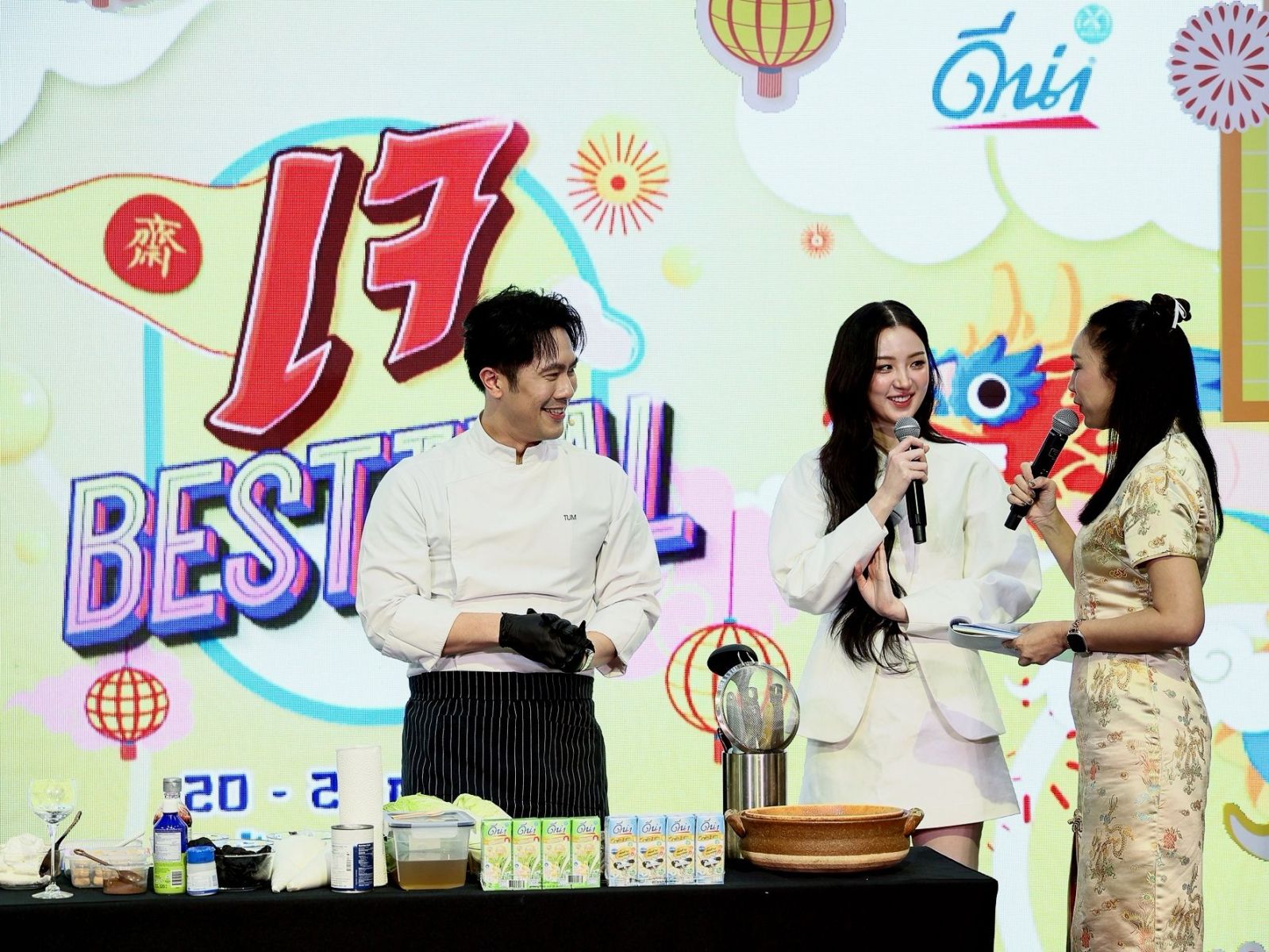 จิตรภณ ไตรรัตน์วรวุฒิ ผู้จัดการฝ่ายการตลาดกลุมผลิตภัณฑ์นมถั่วเหลืองดีน่า บริษัท แดรี่พลัส จำกัด ในกลุ่มบริษัทดัชมิลล์ ให้สัมภาษณ์เพิ่มเติมว่า “ผลิตภัณฑ์ดีน่า ของเราเป็นผลิตภัณฑ์นมถั่วเหลืองผสมธัญพืช ในฐานะที่เราเป็นผลิตภัณฑ์เจ ในทุกๆ สูตร อีกทั้งยังเป็นผลิตภัณฑ์ที่ได้รับการการันตี สินค้าทางเลือกเพื่อสุข_ภาพ เราจึงให้ความสำคัญกับเทศการกินเจ เป็นประจำในทุกๆ ปี ซึ่งในปีนี้เราก็ได้สนับสนุนเทศกาลกินเจในหลากหลายพื้นที่ทั่วประเทศและหนึ่งในนั้นคืองานวันนี้ กับ กิจกรรม เจ BESTIVAL 2025 กินเจทั้งทีมันต้องดีน่า ภายในงานรวมไลฟ์สไตล์การกินเจมาให้ครบครัน ทั้งบูธอาหารเจ เมนูอาหารเจจากนมถั่วเหลืองดีน่า การคอลแลปกับแบรนด์อื่นๆ ที่รังสรรค์เมนูเจตลอดเทศกาลเจปีนี้ อีกทั้งเอาใจสายมูด้วยการสักการะเทพเจ้า และซุ้มดูดวงจากสมาคมโหรแห่งประเทศไทยฯ และโปรโมชั่นพิเศษภายในงาน ซื้อนมถั่วเหลืองดีน่า ก็จะได้เล่นกิจกรรมเพื่อรับของรางวัลมากมาย นอกจากนี้ยังเอาใจสายเอ็นเตอร์เทรนด้วยโชว์พิเศษจากศิลปินทั้งสองวัน กับ วงPROXIE และ จูเนียร์ มาร์ค จาก GMM ที่มาสร้างความสนุกสนาน และความบันเทิงภายในงาน