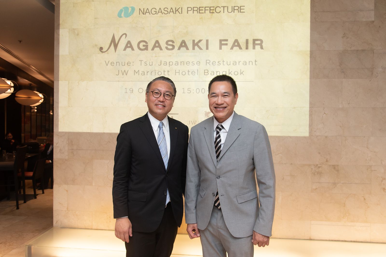 “เพื่อเป็นการส่งเสริมการท่องเที่ยวและวัตถุดิบของจังหวัดนางาซากิ ในโอกาสแห่งการเฉลิมฉลองช่วงปลายปี จังหวัดนางาซากิ จึงได้จัดงาน “Nagasaki Fair” ขึ้น เพื่อให้คนไทย ผู้ที่ชื่นชอบอาหารญี่ปุ่น ได้รู้จักกับจังหวัดนางาซากิ ผ่านวัฒนธรรมอาหาร ซึ่งจังหวัดนางาซากิถือเป็นเมืองที่มีชื่อเสียงในฐานะผู้ผลิตวัตถุดิบอาหาร และมีอาหารท้องถิ่นอันเป็นเอกลักษณ์เฉพาะตัว การจัดงานครั้งนี้ได้รับความร่วมมือจากโรงแรมเจดับบลิว แมริออท กรุงเทพฯ โดยห้องอาหารญี่ปุ่นสึ ซึ่งมีเชฟอัตสึชิ โยชิดะ หัวหน้าเชฟประจำห้องอาหาร จะเป็นผู้นำวัตถุดิบอันหลากหลายจากจังหวัดนางาซากิมาปรุงเป็นเมนูสุดพิเศษ ที่จะทำให้ทุกท่านที่ได้รับประทานอาหารเสมือนหนึ่งได้ท่องเที่ยวไปในจังหวัดนางาซากิ”