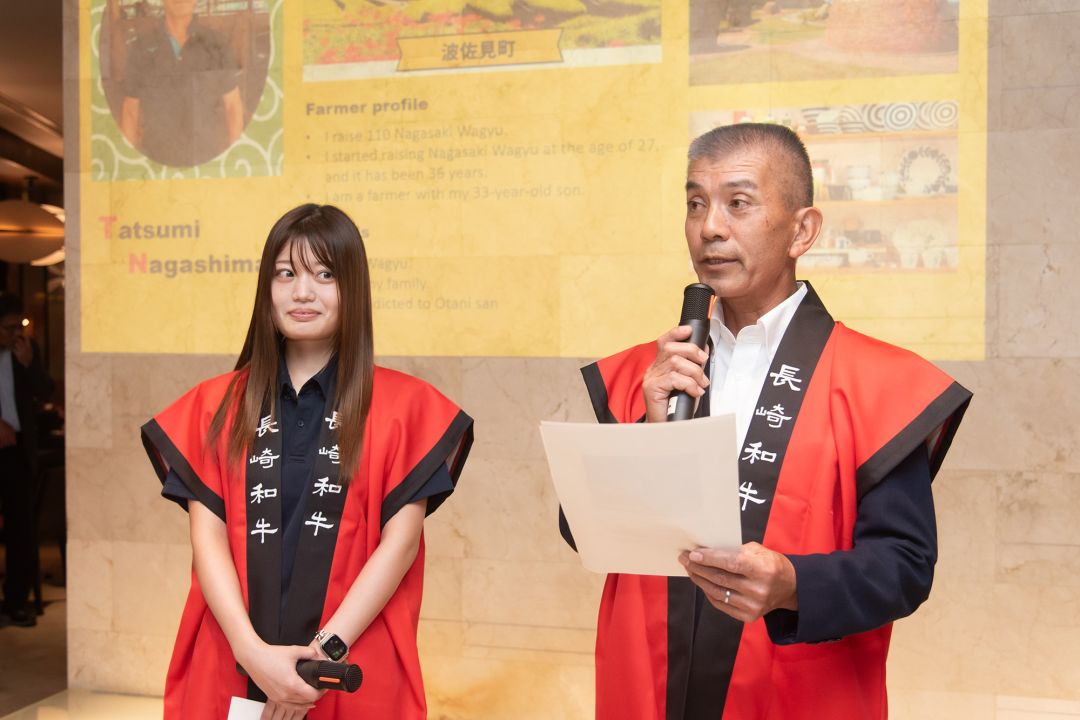 ผู้ว่าราชการจังหวัดนางาซากิ ได้แนะนำผลผลิตทางการเกษตรและการประมงที่นำมาเป็นวัตถุดิบอาหารอันยอดเยี่ยมของจังหวัดนางาซากิ อาทิ เนื้อสันนอกวากิว ด้วยสภาพภูมิประเทศและสภาพภูมิอากาศของจังหวัดนางาซากิ รวมถึงกรรมวิธีการเลี้ยงวัวอย่างพิถีพิถัน เอาใจใส่ และคำนึงถึงความปลอดภัยของผู้บริโภค จึงทำให้เนื้อสันนอกวากิวของนางาซากิ มีรสชาติที่ดีและกลิ่นหอม เมื่อนำมาปรุงเป็นสเต็กจึงมีความนุ่มละมุนลิ้น อีกทั้งเนื้อวากิวของนางาซากิ ยังเคยได้รับรางวัลชนะเลิศระดับประเทศในการแข่งขันโอลิมปิกวากิวที่จัดขึ้นทุก 5 ปี ในประเทศญี่ปุ่น