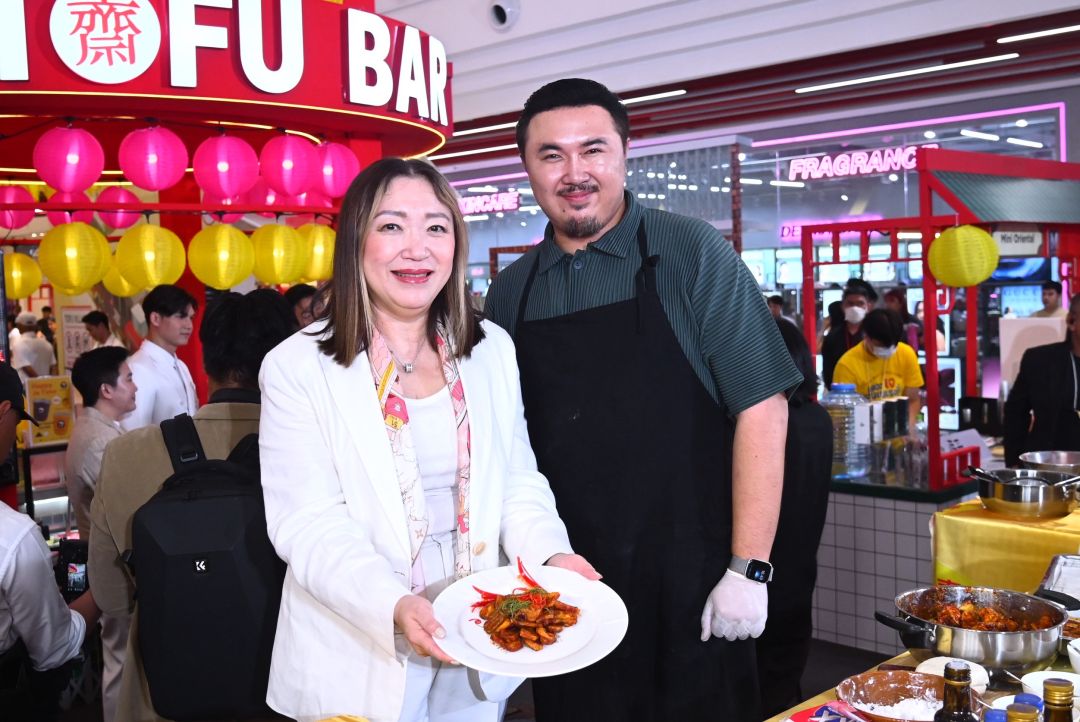 โดยไฮไลท์ของการเปิดงานพบกับครั้งแรก! ของการรังสรรค์เมนูอาหารจากเต้าหู้สุดเอ็กซ์คลูซีฟ โดย เชฟโอม - ฐานทัศน์ ชมภูพล เจ้าของร้านแสงท่าเตียน ร้านอาหารไทยที่ได้รับมิชลินไกด์ 2025 พร้อมทั้งพูดคุยถึงเมนู “ปลาช่อนผัดพริกขิงเจ” ซึ่งเป็นเมนูโปรดที่เชฟโอมชื่นชอบตั้งแต่เด็ก และเป็นหนึ่งในเมนูยอดฮิตของร้านแสงท่าเตียน โดยใช้วัตถุดิบยอดฮิตที่ดีต่อสุขภาพอย่าง “น้ำมันเมล็ดคามีเลีย” และ “เต้าหู้ต้ามู่” ที่มีกลิ่นหอมของถั่วเหลือง และสัมผัสกรอบนอกนุ่มใน อร่อย ทานง่าย กินคู่กับอะไรก็อร่อย จอยได้ทุกเจน
