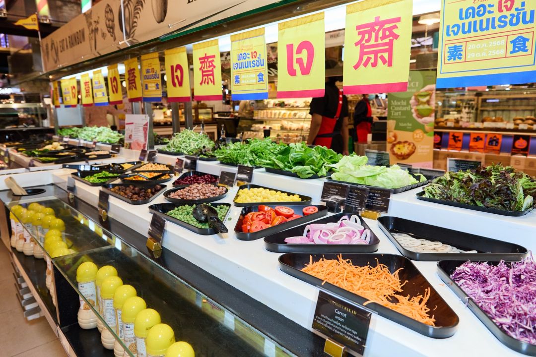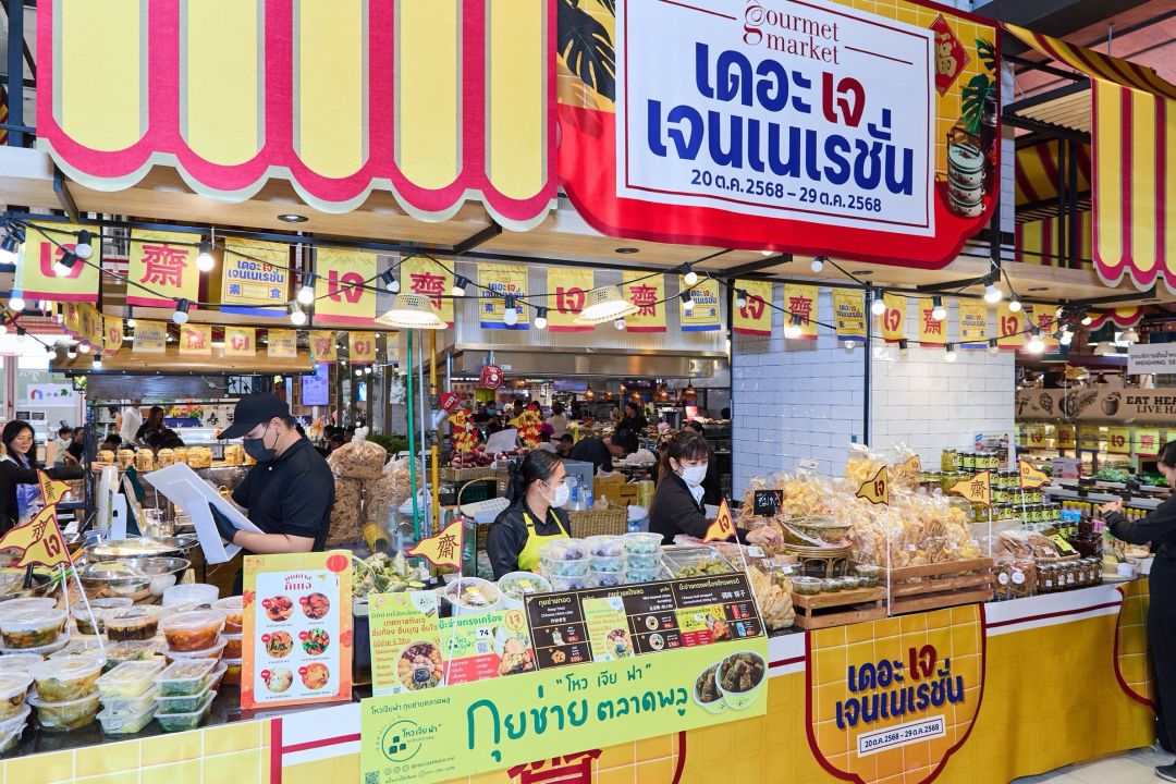 กูร์เมต์ มาร์เก็ต และ กูร์เมต์ อีทส์ ร่วมเสริมทัพให้เทศกาลเจปีนี้ยิ่งใหญ่กว่าที่เคยนำเสนอวัตถุดิบ และอาหารเจคุณภาพระดับพรีเมียม ทั้งเมนูพร้อมทานและวัตถุดิบสดใหม่ พร้อมตกแต่งบรรยากาศร้านอาหารและโซนสินค้าเจทั่วทั้งกูร์เมต์ มาร์เก็ต และกูร์เมต์ อีทส์ ให้กลายเป็นเทศกาลอาหารเจที่ครบและคึกคักที่สุด เพื่อมอบประสบการณ์ที่ดีที่สุดทุกเจนเนเรชั่นให้กับลูกค้าในทุกมิติโดยกูร์เมต์ มาร์เก็ต ได้จัดหมวดวัตถุดิบสุขภาพครอบคลุมทุกกลุ่ม อาทิ กลุ่มเต้าหู้หลากชนิด เช่น เต้าหู้ญี่ปุ่น, อูโนะฮานะ, เต้าหู้คลองแงะ, เต้าหู้เหลือง ร้านต้ามู่ สูตรโบราณ 100 ปี, กลุ่มผลไม้เพื่อสุขภาพทั้งใน และต่างประเทศ,กลุ่มวัตถุดิบประกอบอาหาร เช่น ถั่ว 5 สี ออแกนิค, ลูกท้อหมี่เบตงออริจินัล รวมถึง กลุ่มผักสดคุณภาพระดับพรีเมียม และกลุ่มอาหารพร้อมทาน Plant-based และเครื่องดื่มสุขภาพ เช่น นมถั่วเหลืองออร์แกนิก น้ำสมุนไพร และนมโปรตีนสูง