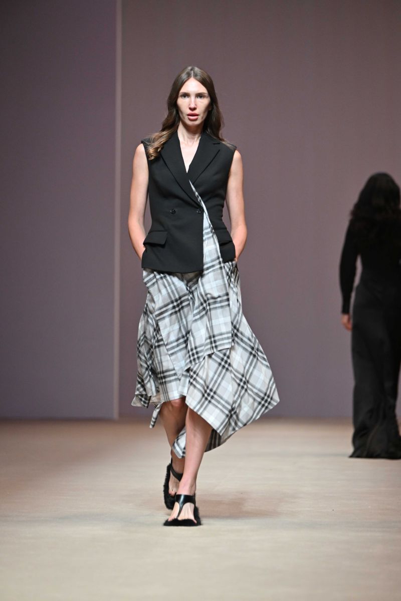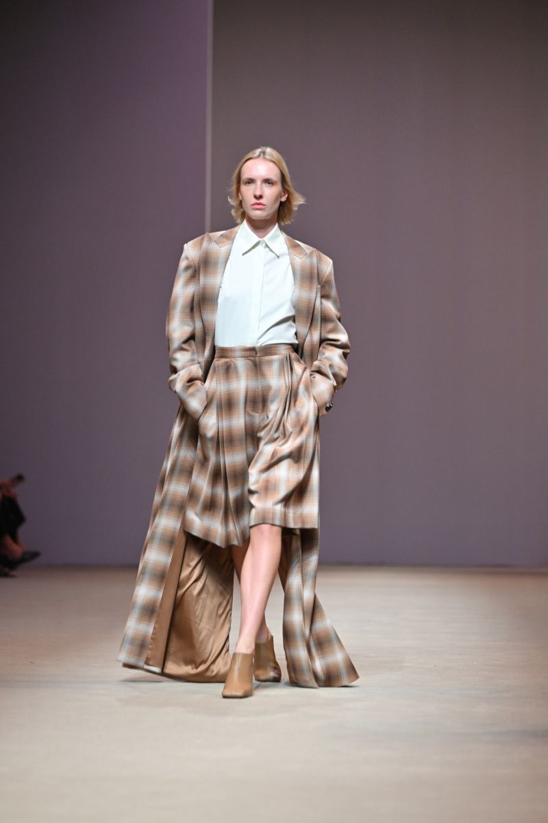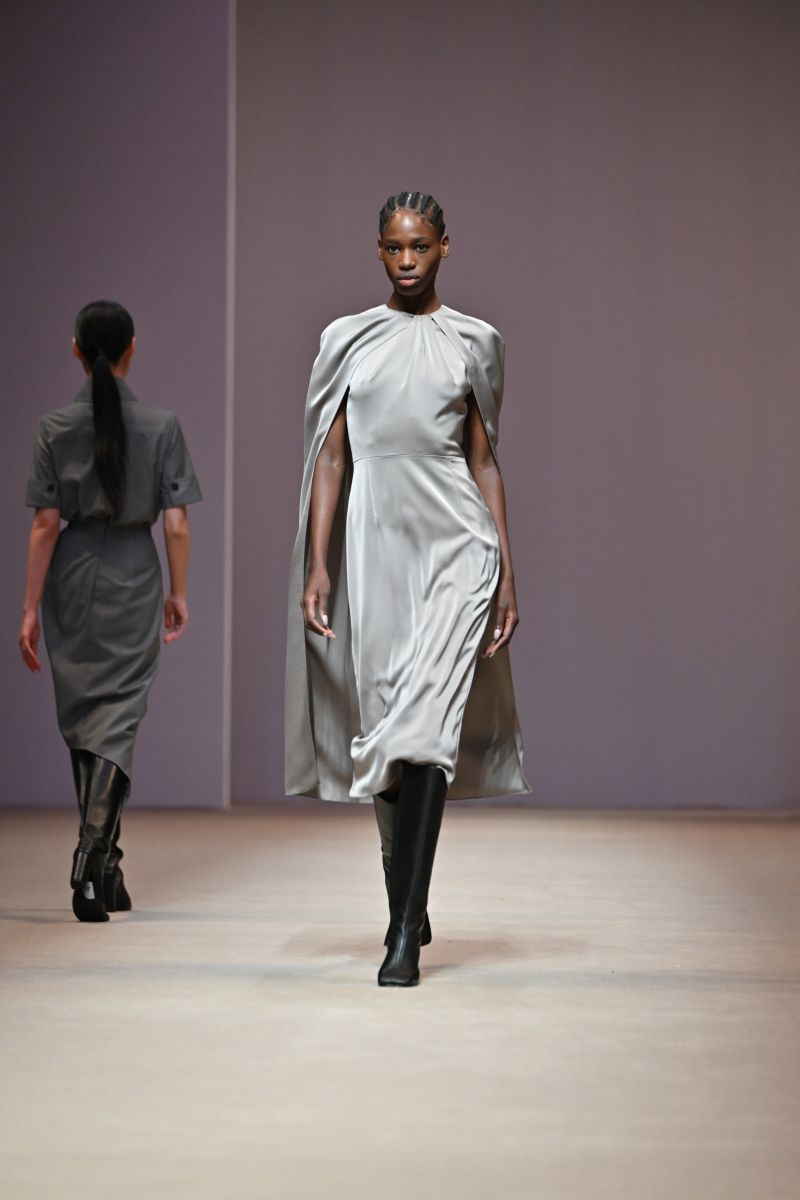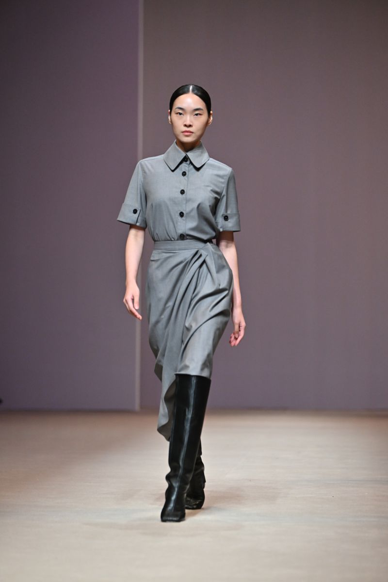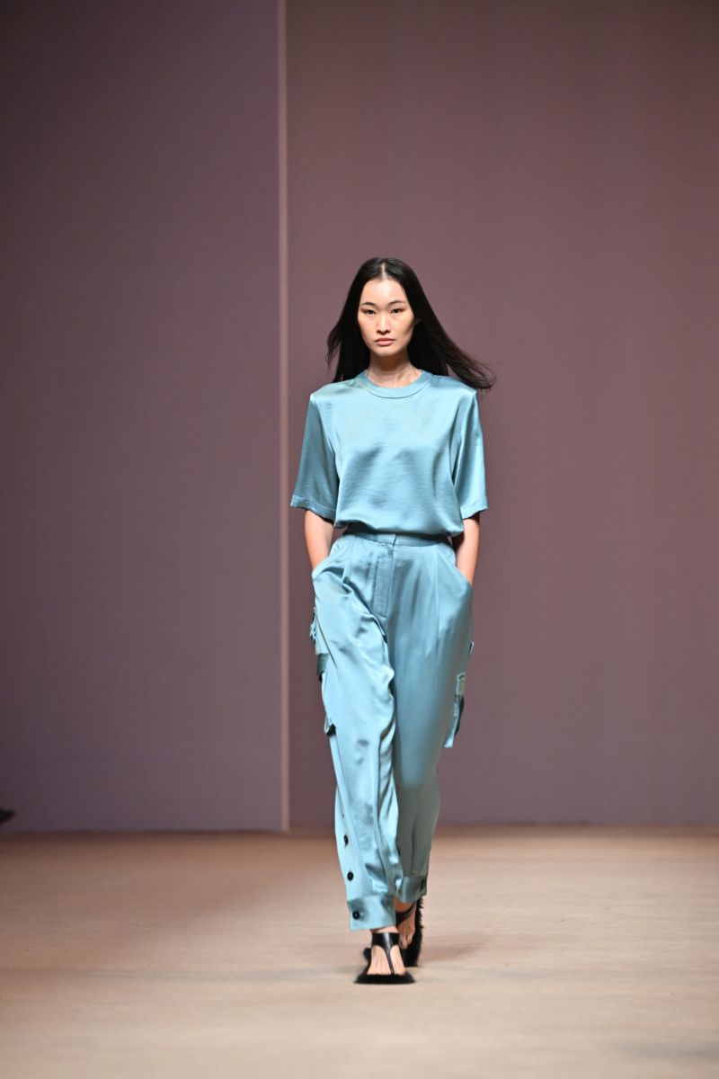 Silhouettes : คอลเลกชั่นนี้ขยายกรอบความหลากหลายของซิลลูเอท ตั้งแต่ชุดลำลองที่เรียบง่ายในแบบ casual daywear ไปจนถึงชุดราตรีที่เรียบโก้สง่างาม โดยยังคงเอกลักษณ์ของแบรนด์ที่เน้นโครงสร้างเฉียบคม รายละเอียดที่พิถีพิถัน และการสวมใส่ที่สอดคล้องกับไลฟ์สไตล์ในชีวิตจริง อย่าง เสื้อทรงเทรนช์ (Trench Blouse) และเชิ้ตเดรส (Shirt Dress) ที่ได้รับการตีความใหม่ให้ดูร่วมสมัยมากขึ้น เดรสชายแฮนด์เคอชีฟ (Handkerchief Dress) ที่เติมความพลิ้วไหวให้ลุคดูมีชีวิตชีวา ไปจนถึงกางเกงทรงเทเปอร์ (Tapered Pants), กางเกงทรงบอลลูน (Balloon Pants), กางเกงทรงฮาเล็ม (Harlem Pants) และกางเกงซิลลูเอตใหม่ที่ปรับทั้งสัดส่วนและความยาว เพื่อสร้างความสดใหม่ในเชิงโครงสร้าง นอกจากนี้ยังมีเสื้อท่อนบนแบบ Tank Top ที่มาพร้อมดีเทลปกผ้าพันคอ (Scarf Collar) เพิ่มมิติให้กับลุคที่เรียบง่ายแต่ไม่ธรรมดา