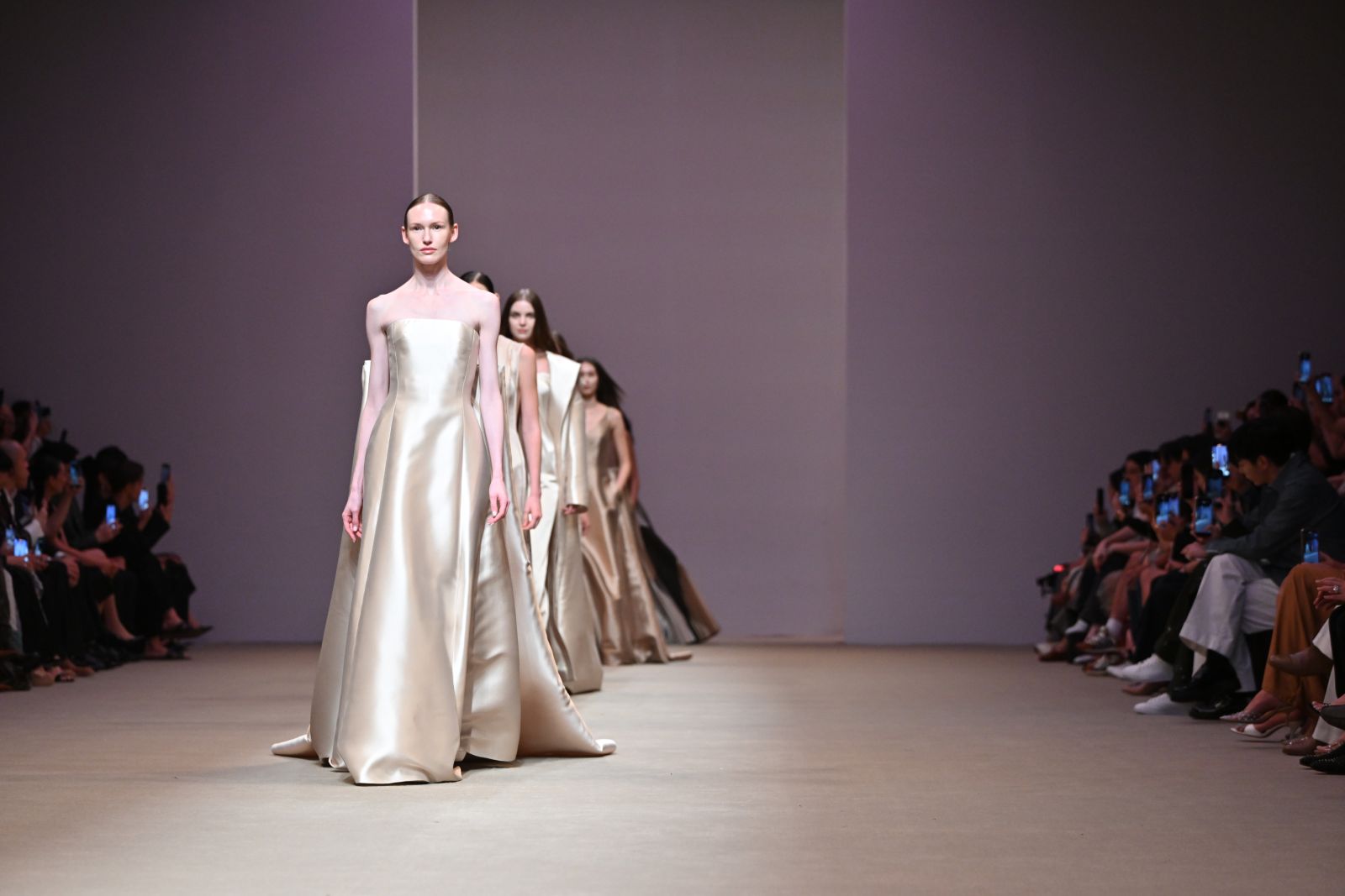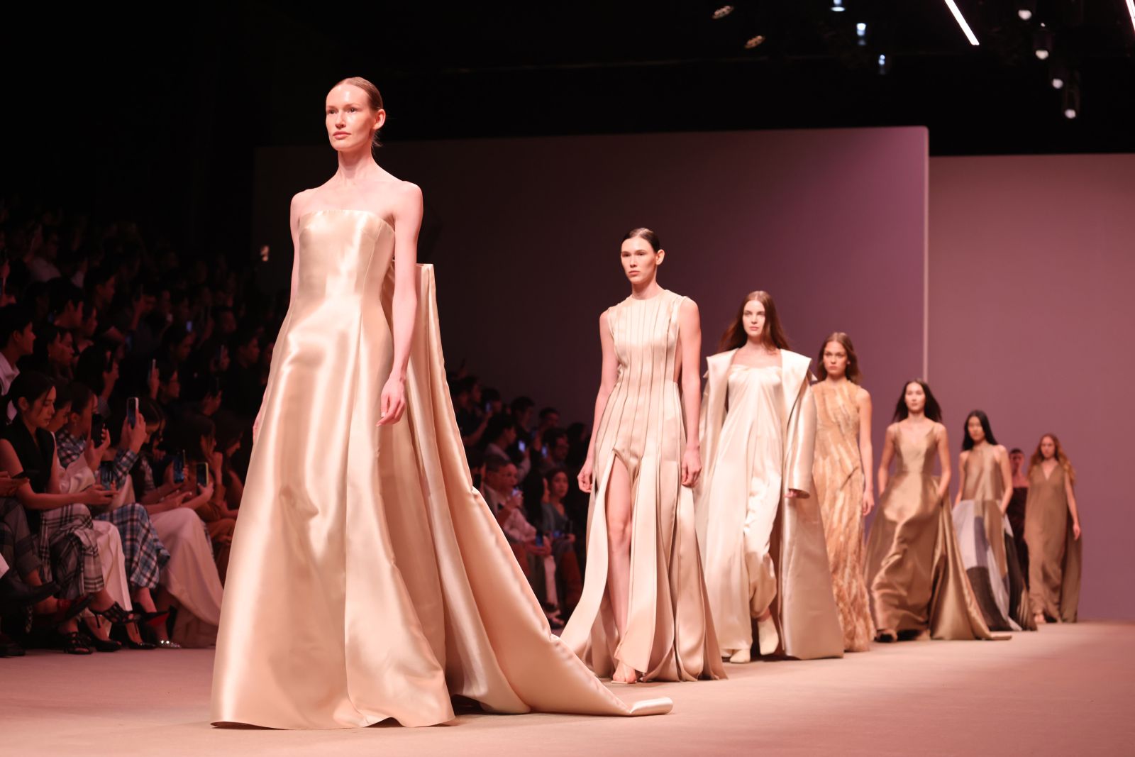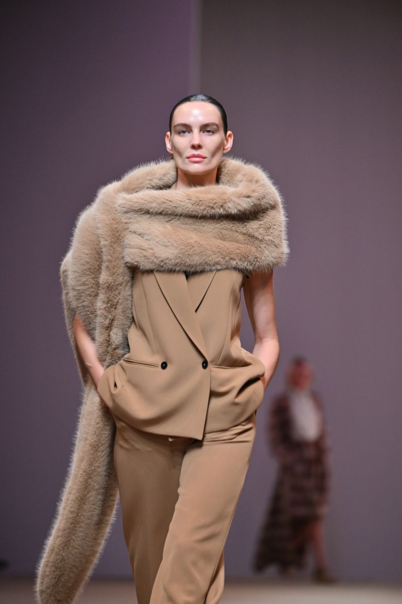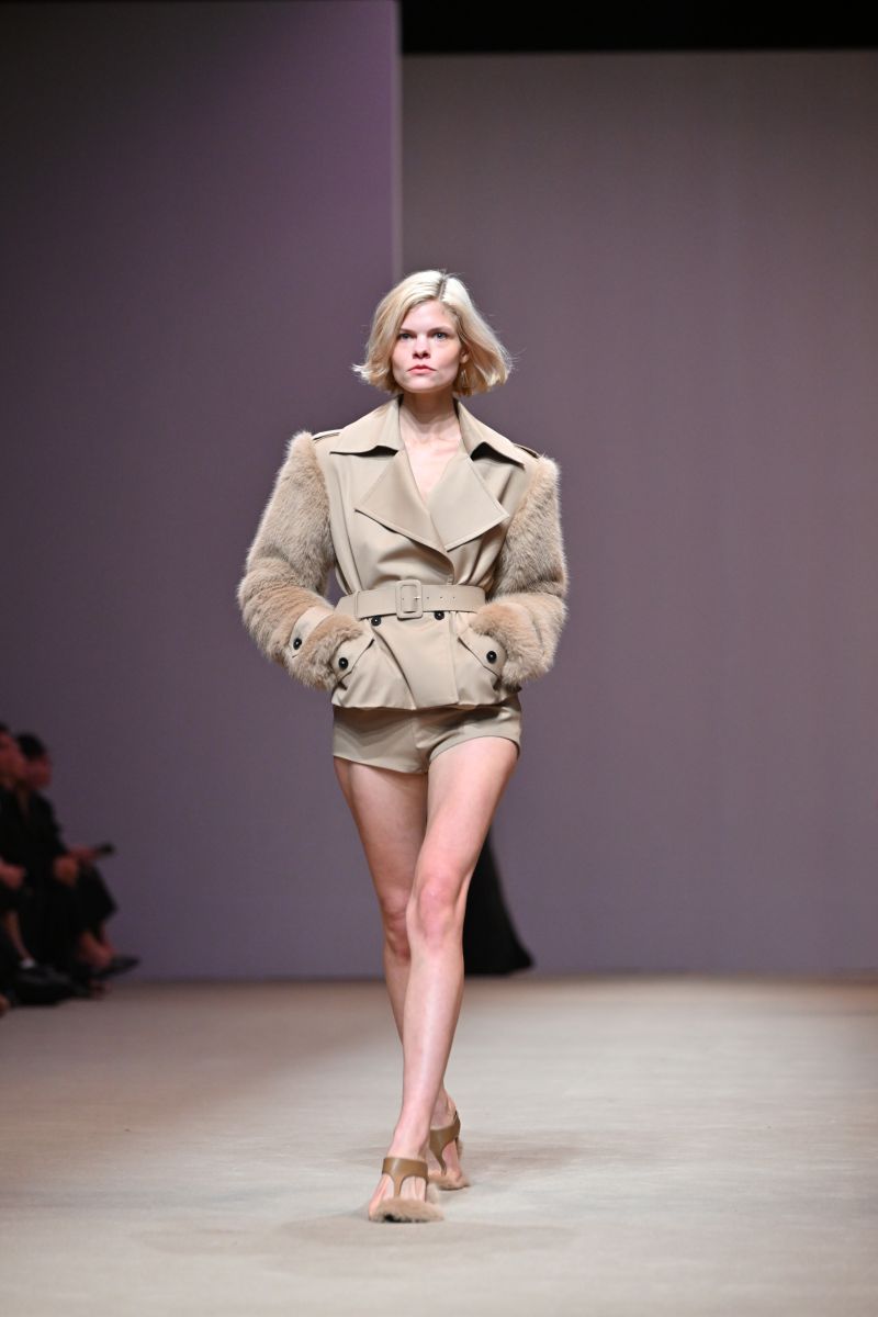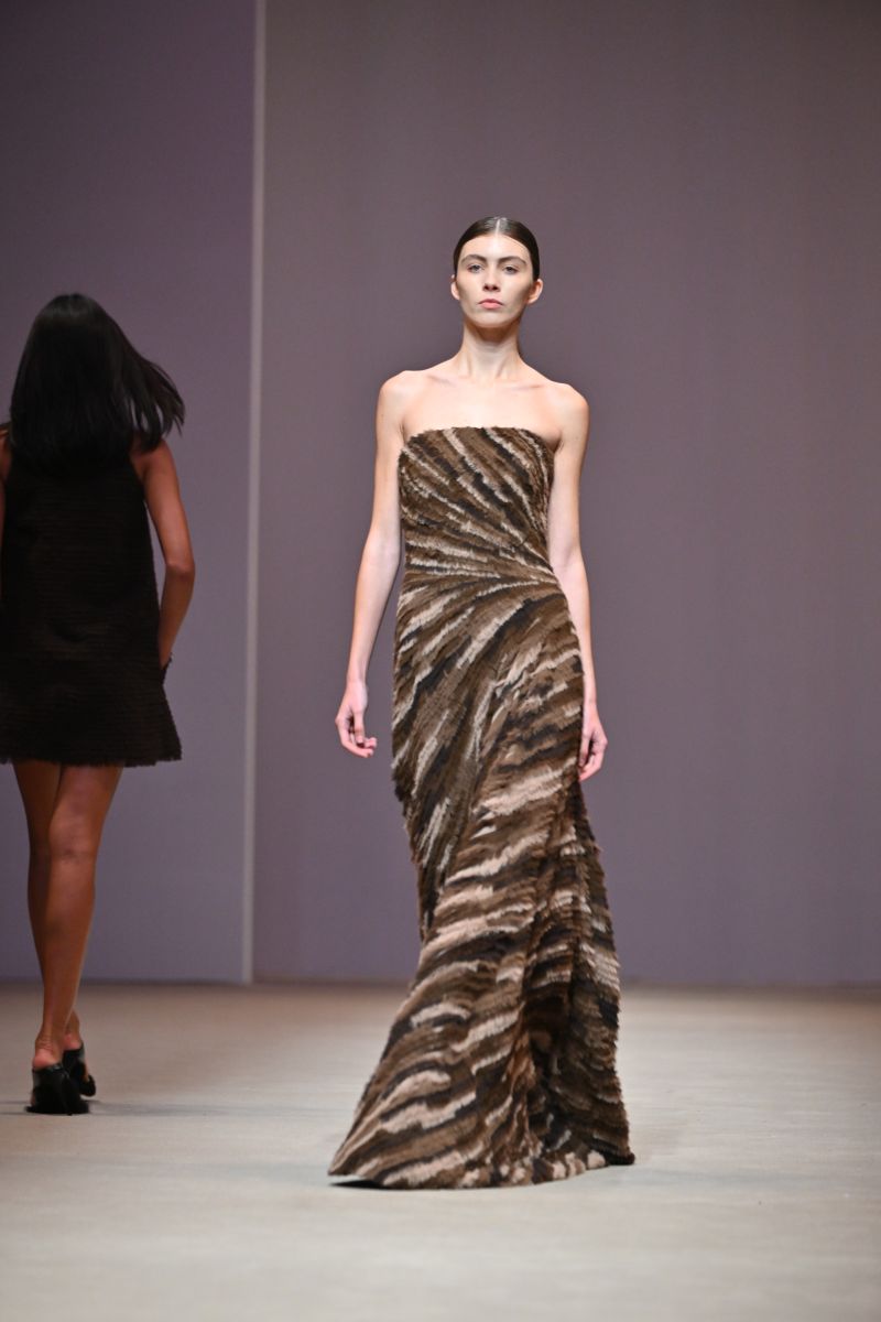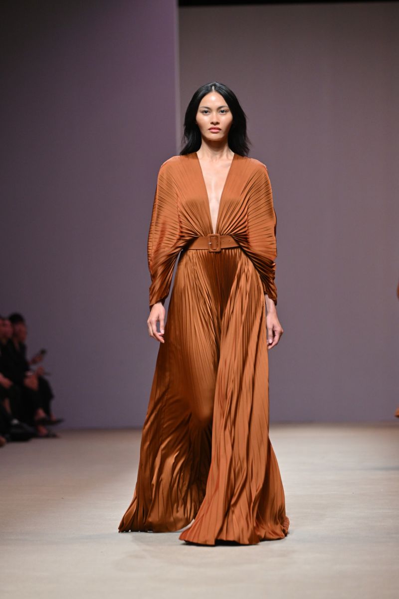 Fabrics & Colors : คอลเลกชั่นนี้ถ่ายทอดอารมณ์ที่หลากหลายของฤดูใบไม้ร่วงผ่านการผสมผสานเนื้อผ้าที่ให้ทั้งความอบอุ่นและพลิ้วไหว อาทิ ผ้าวูล (Wool), ดัชเชสซาติน (Duchess Satin), คอตตอน (Cotton), ผ้าลายตาราง (Plaid) และทวีด (Tweed) พาเลตต์สีเน้นโทนสีกลาง (Neutral) โดยใช้เฉดคาราเมล (Shades of Caramel) เป็นแกนหลักในการเล่าเรื่องราว พร้อมเพิ่มลูกเล่นด้วยเฉดสีที่โดดเด่นอย่าง สีชมพู (Pink), สีเหลือง (Yellow), สีเบอร์กันดี (Burgundy) และสีเขียวไพร (Jungle Green) เติมชีวิตชีวาให้กับคอลเลกชั่นได้อย่างลงตัว