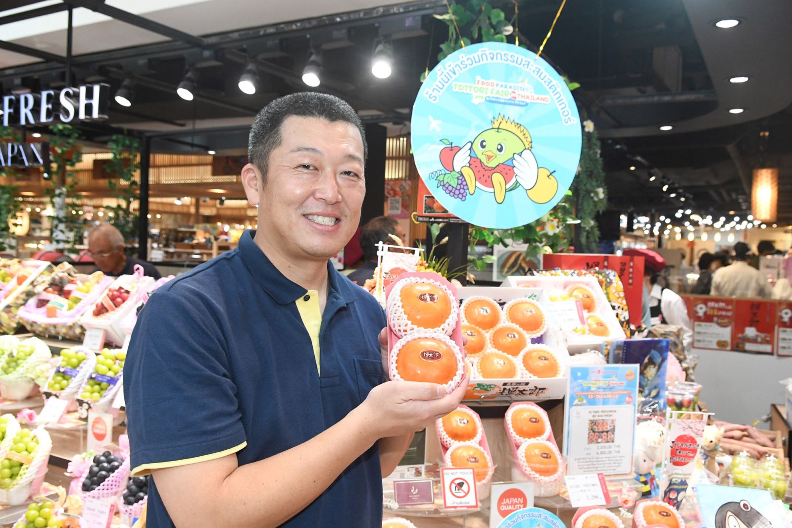 นอกจากยังมีผลิตภัณฑ์จากจังหวัดทตโตะริ มาจำหน่ายมากมาย เช่น Chiyomusubi Junmai Ginjo Goriki50 สาเกหมักจากข้าวสายพันธุ์โกริกิ มีกลิ่นหอมละมุน รสชาติกลมกล่อมพร้อมสมดุลของอูมามิกับความเปรี้ยว, เบ็นเท็นมุสุเมะ จุนไมกิงโจ ทามะซะกาเอะ เป็นสาเกจุนไมกิงโจที่เกิดจากการหมักตามธรรมชาติ ให้รสชาติกลมกล่อมใสสะอาด พร้อมความสมดุลของความเปรี้ยวอ่อน ๆ ดื่มง่ายและอ่อนโยนต่อร่างกาย ราวกับเป็น “ไวน์ญี่ปุ่น” เลยครับ อีกหนึ่งผลิตภัณฑ์ขึ้นชื่อคือ ลูกพลับพันธุ์ “KITARO” ส่งตรงจากจังหวัดทตโตะริ มีผลขนาดใหญ่ ผิวสีส้มสดสวย เนื้อสีทองนุ่มแน่น มีรสชาติหวานจัด ทานสดได้ ไม่มีรสฝาด ลูกพลับจากทตโตะริถือเป็นผลไม้พรีเมียมหายากที่ชาวญี่ปุ่นภาคภูมิใจและนิยมมอบเป็นของขวัญคุณภาพสูง