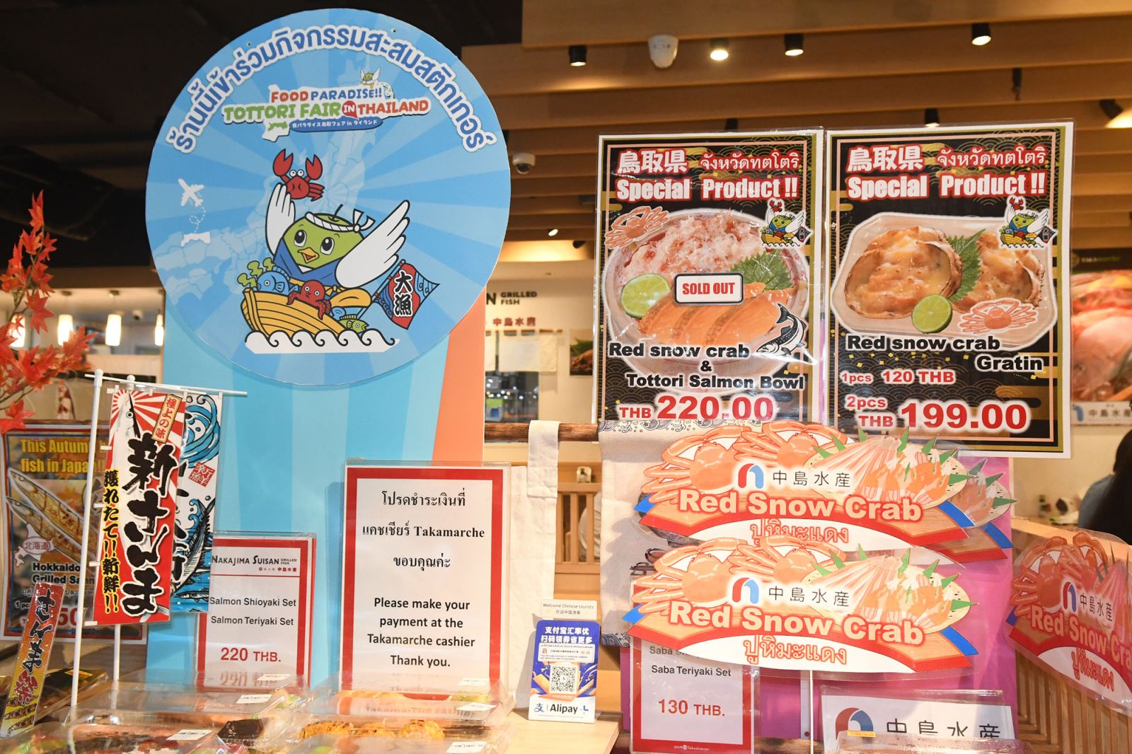 ‘Food Paradise!! TOTTORI Fair in THAILAND’ ขนขบวนเมนูดังจากจังหวัดทตโตะริมาให้เจแปนนิสเลิฟเวอร์ได้ลิ้มรสมากมาย อาทิ เมนูที่สายเนื้อต้องไม่พลาด Tottori Don จากร้าน YUNA เนื้อวากิวทตโตะริย่างนุ่มละมุน ท้อปปิ้งด้วยปูหิมะรสหวานหอม จากทะเลญี่ปุ่นทตโตะริ เสิร์ฟพร้อมข้าวสวยร้อนๆ อีกหนึ่งเมนูจากร้าน TOTTORI WAGYU BEEF BONE RAMEN หรือราเมนซุปกระดูกวัว เมนูเด็ดของจังหวัดทตโตะริ น้ำซุปกระดูกวัวรสชาติกลมกล่อม หอมกลิ่นเครื่องเทศเข้มข้น สดชื่น เข้ากันได้อย่างลงตัวกับเส้นราเมนสูตรพิเศษ , Kanimiso Kourayaki MO และขนมจีบปูจากร้าน Koshikawa ลิ้มรสเนื้อปูทตโตะริกับมิโซะปูที่ปรุงสุกเล็กน้อย แล้วนำใส่กลับเข้าไปในกระดอง ย่างบนเตาถ่าน ให้คุณลิ้มรสความหอมกรุ่นจากทะเลทตโตะริ