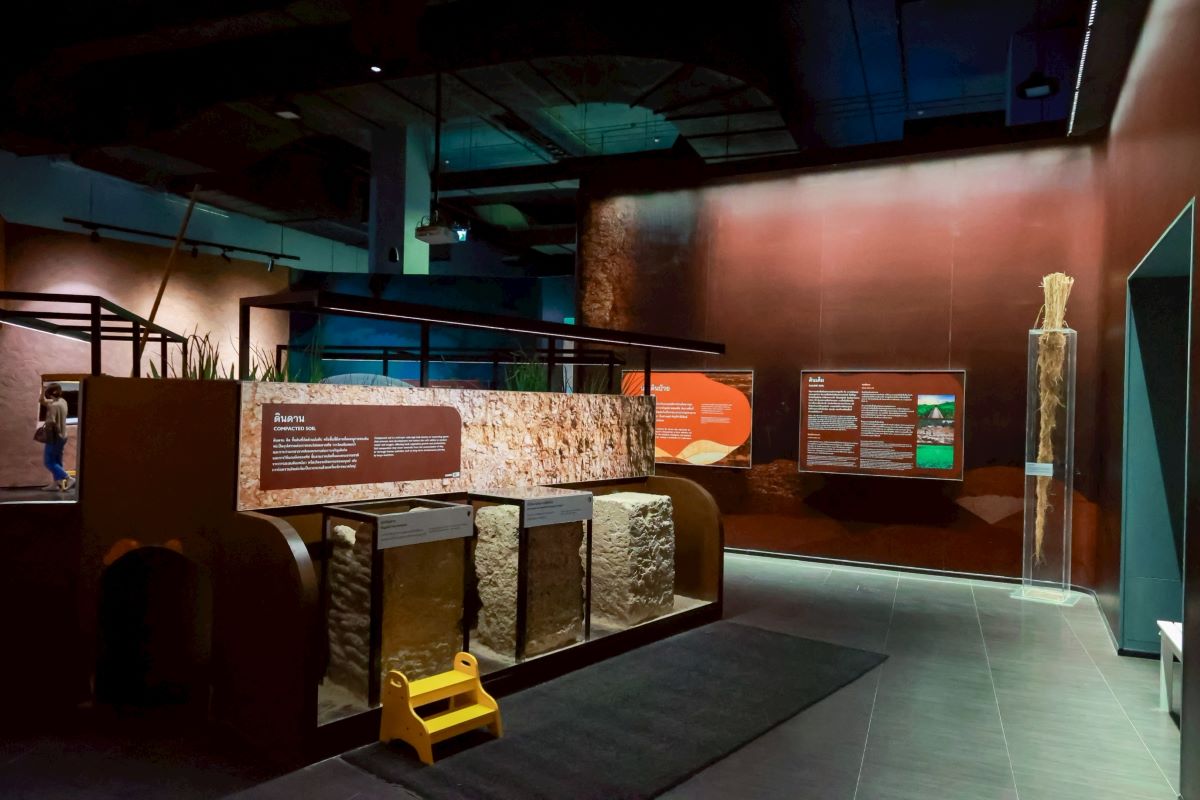 พิพิธภัณฑ์พระรามเก้า นิทรรศการดิน (THAILAND ECOSYSTEM SERVICE : SOIL): นำเสนอการสร้างความเข้าใจที่ถูกต้องเกี่ยวกับคุณสมบัติของดินและการบริหารจัดการดินอย่างยั่งยืน โดยมีการจำลองการใช้ หญ้าแฝก ตามแนวพระราชดำริ เพื่อชะลอการไหลของน้ำและป้องกันการชะล้างพังทลายของหน้าดิน ซึ่งเป็นเทคโนโลยีเชิงอนุรักษ์
